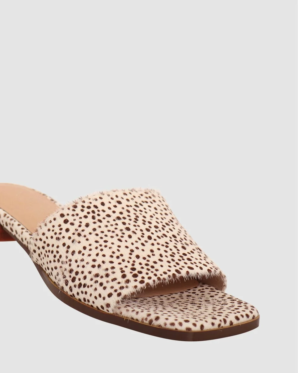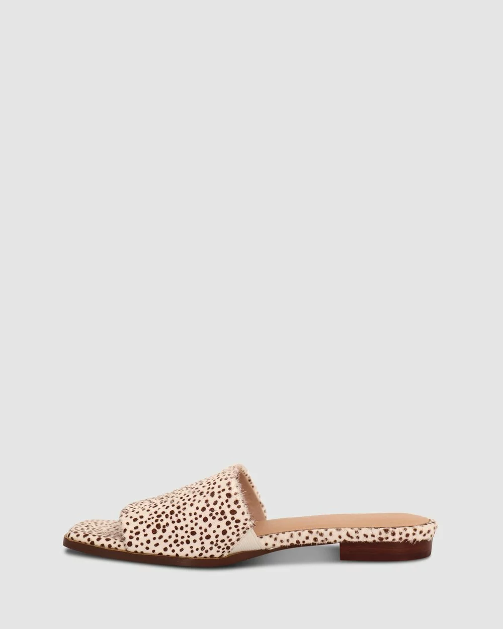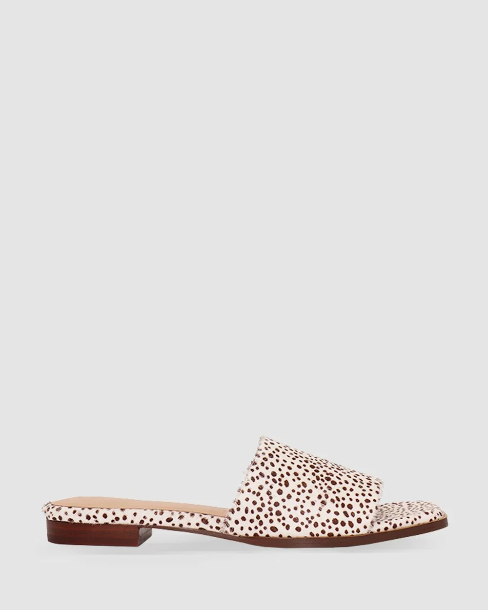 The Blaire flat slide, by Nude Footwear, are an effortless addition to your Winter wardrobe. Crafted from luxe Tiny Spot Pony Hair, her minimal yet timeless silhouette has been designed to slip on and go with ease.