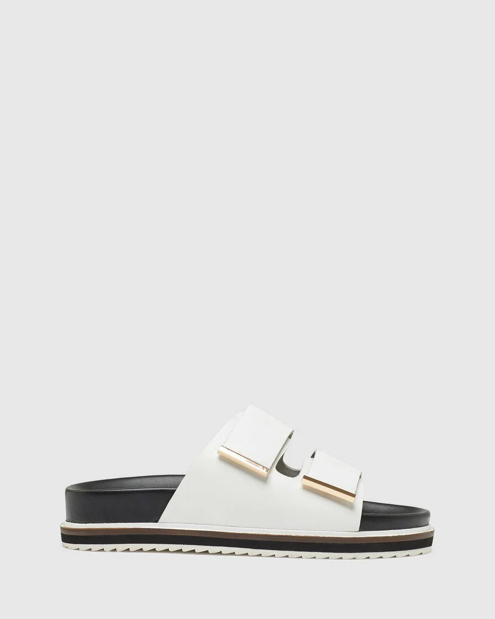 Complete your look with the Aria Leather Sandal by Oxford. These sleek sandals feature leather straps and velcro fastening with rose metal detail and a contoured sole