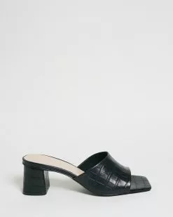 Atmos&Here Chee Leather Heels Black Croc Embossed Leather