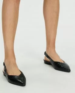 Atmos&Here Fiona Leather Slingback Flats Black Croc Embossed Leather