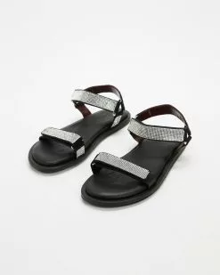 Staud Sonny Rhinestone Sandals Black & Rhinestone