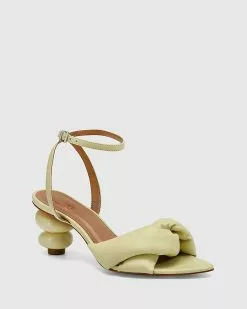 Wittner Visser Leather Round Sculptured Heel Sandals Green