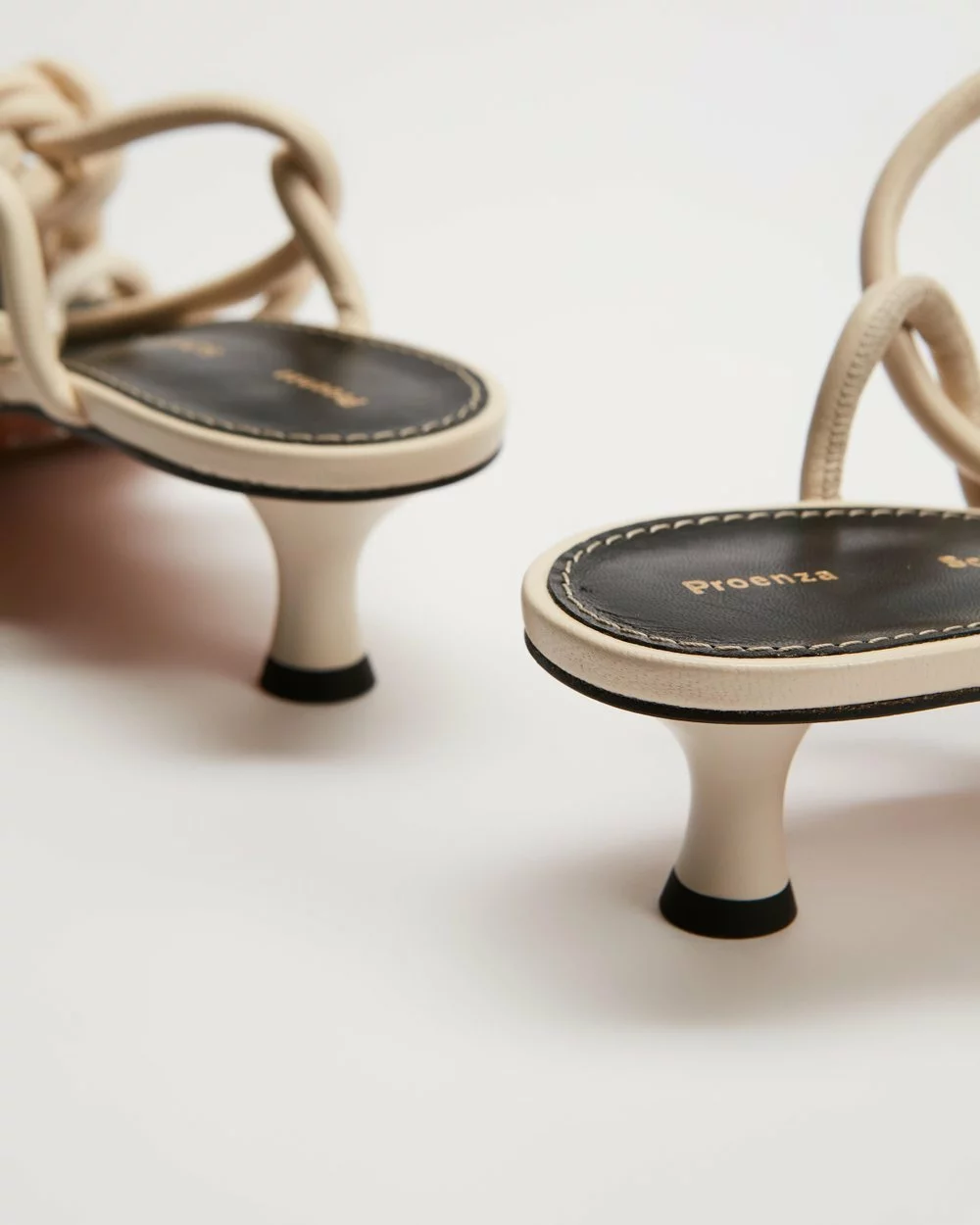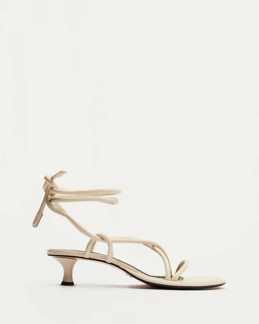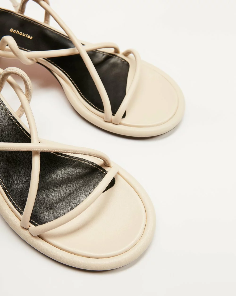 The Pipe Ankle Tie Sandals by New York label Proenza Schouler showcase the creative and high-style attitude of the big apple with their exceptional craftmanship and editorial-worthy design. Wear these open toe kitten heels with an oversized button front shirt for a relaxed fashion moment.