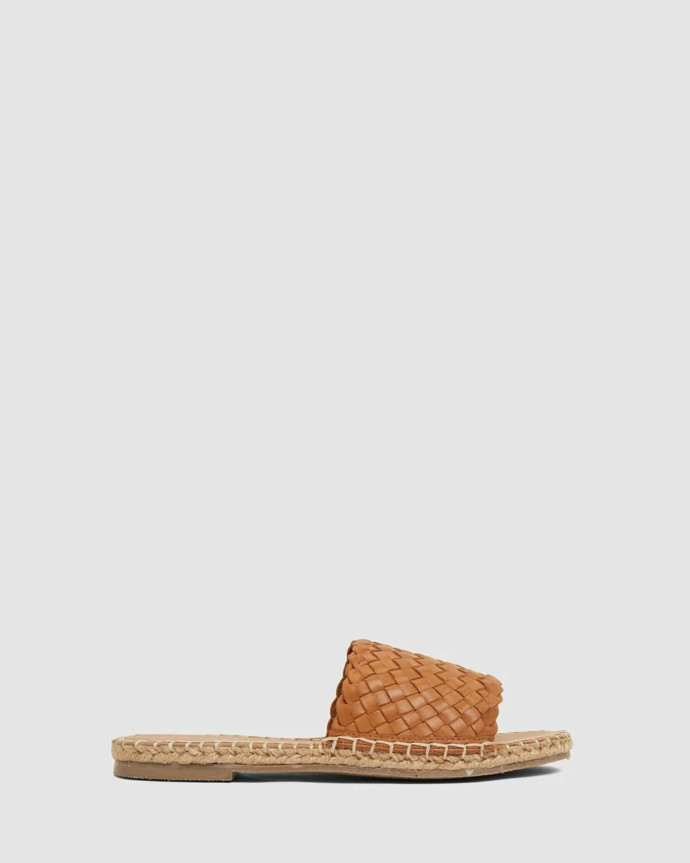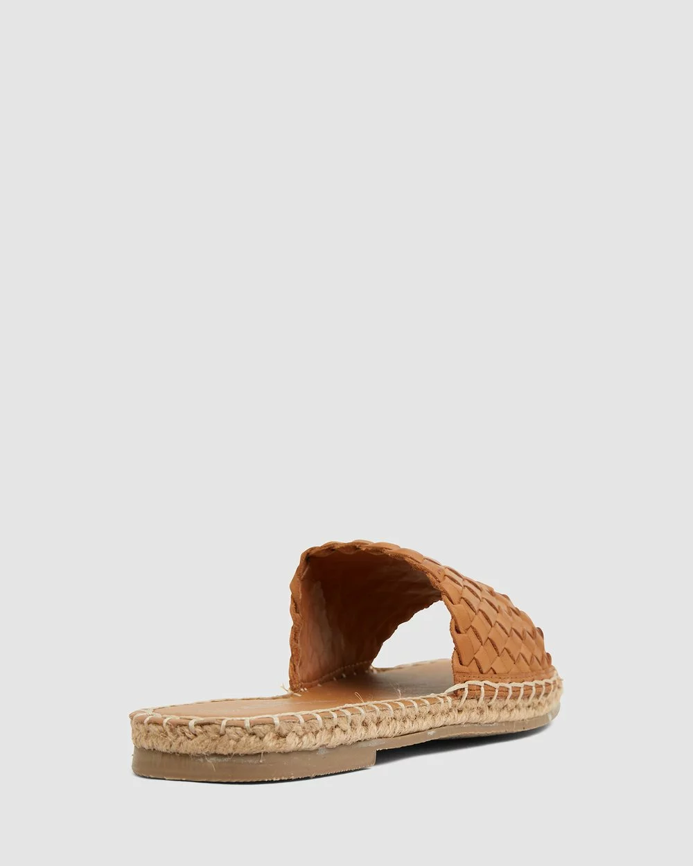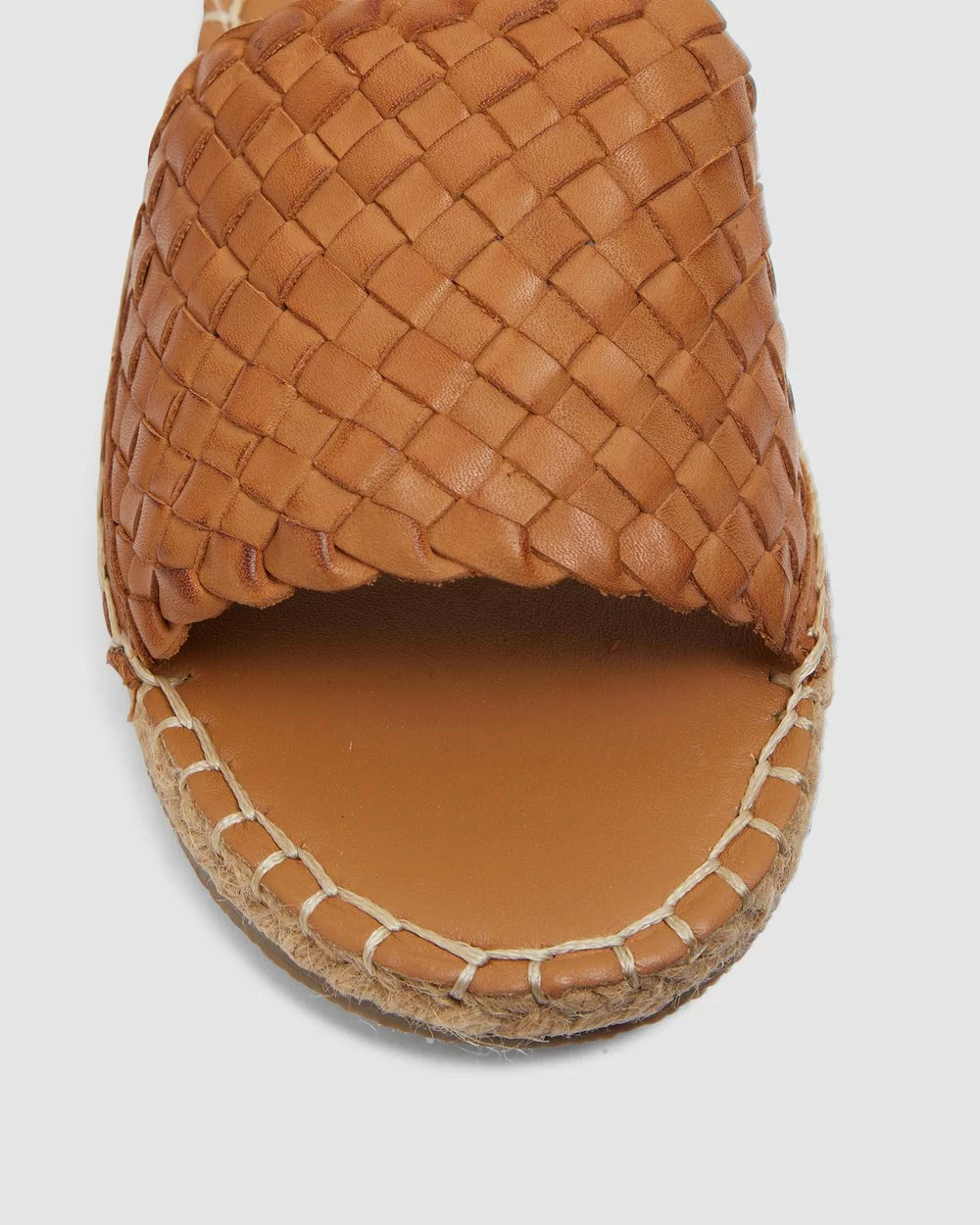 – Leather upper, Leather sock, Synthetic sole- Standard fit (B-fit)- Woven upper design – Almond open toe – Braided outsole