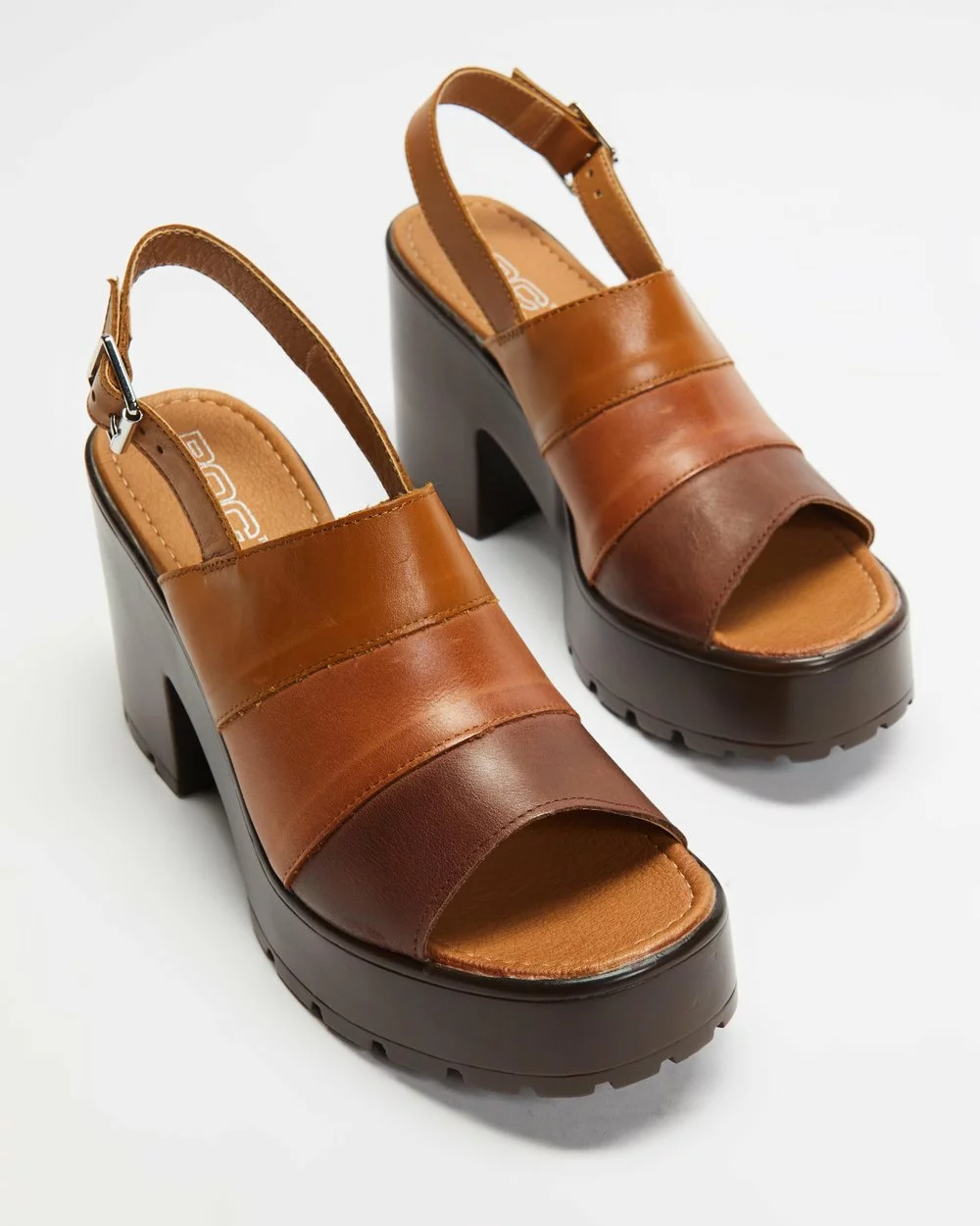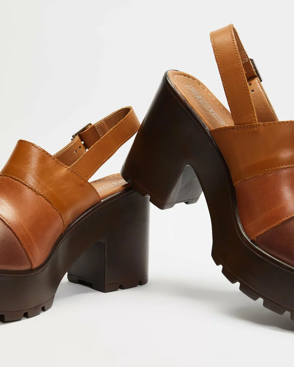 – 10cm block heel; 3.5cm cleated platform