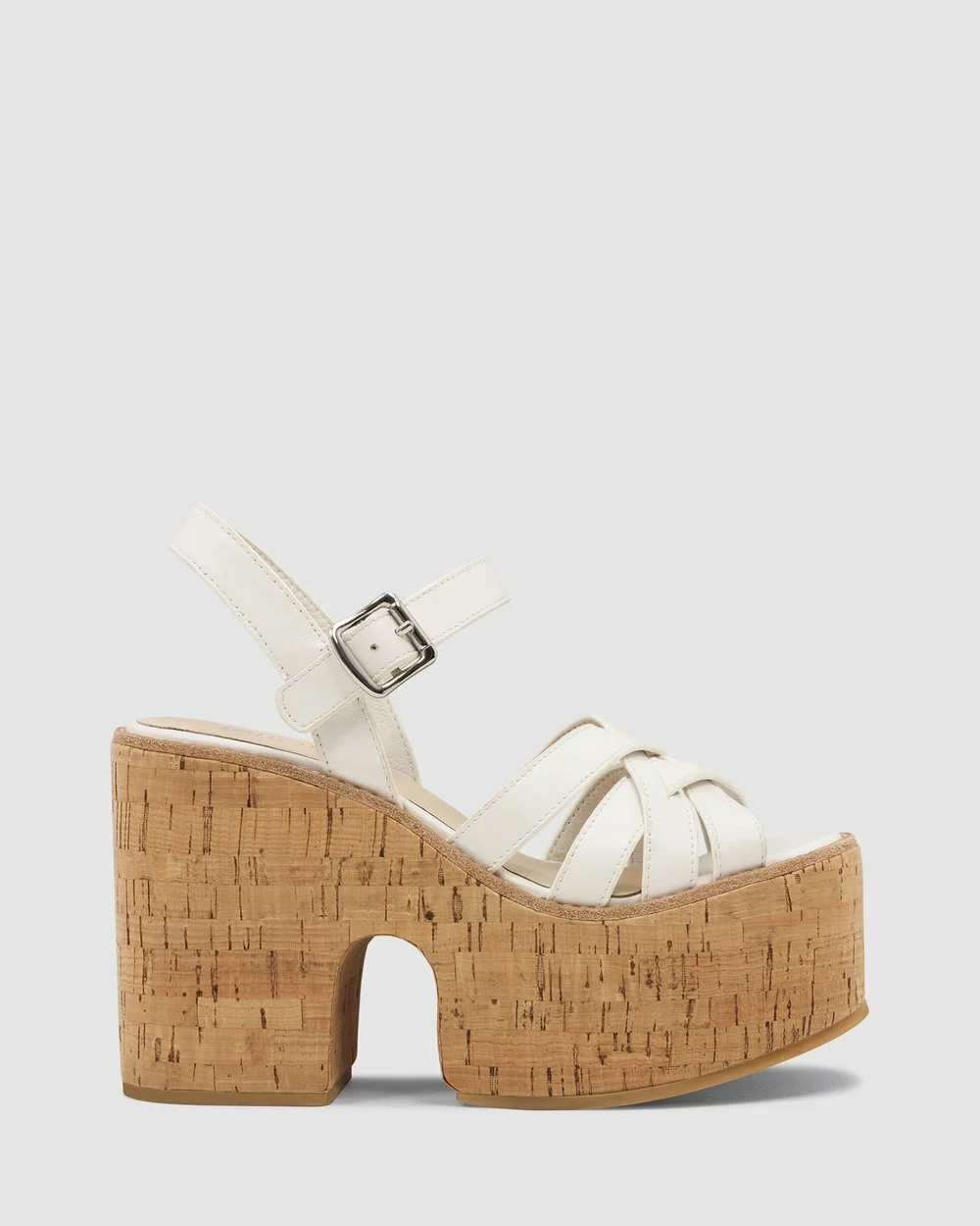 – 1970’s inspired cork platform – Leather upper – Leather lining – Adjustable ankle strap – Leather insole cover – Cushioned insole – Natural cork platform cover – Rubber sole – 11cm heel, 6cm platform