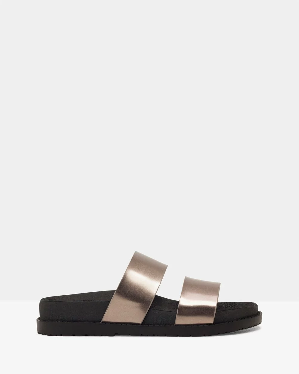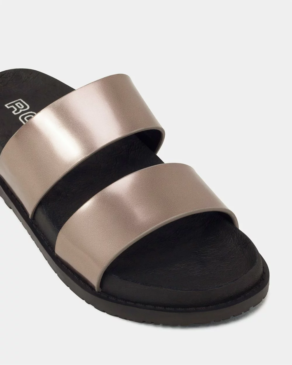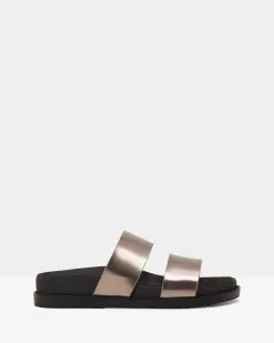 Tarot the Metallic twin strap open toe sandal from ROC. A