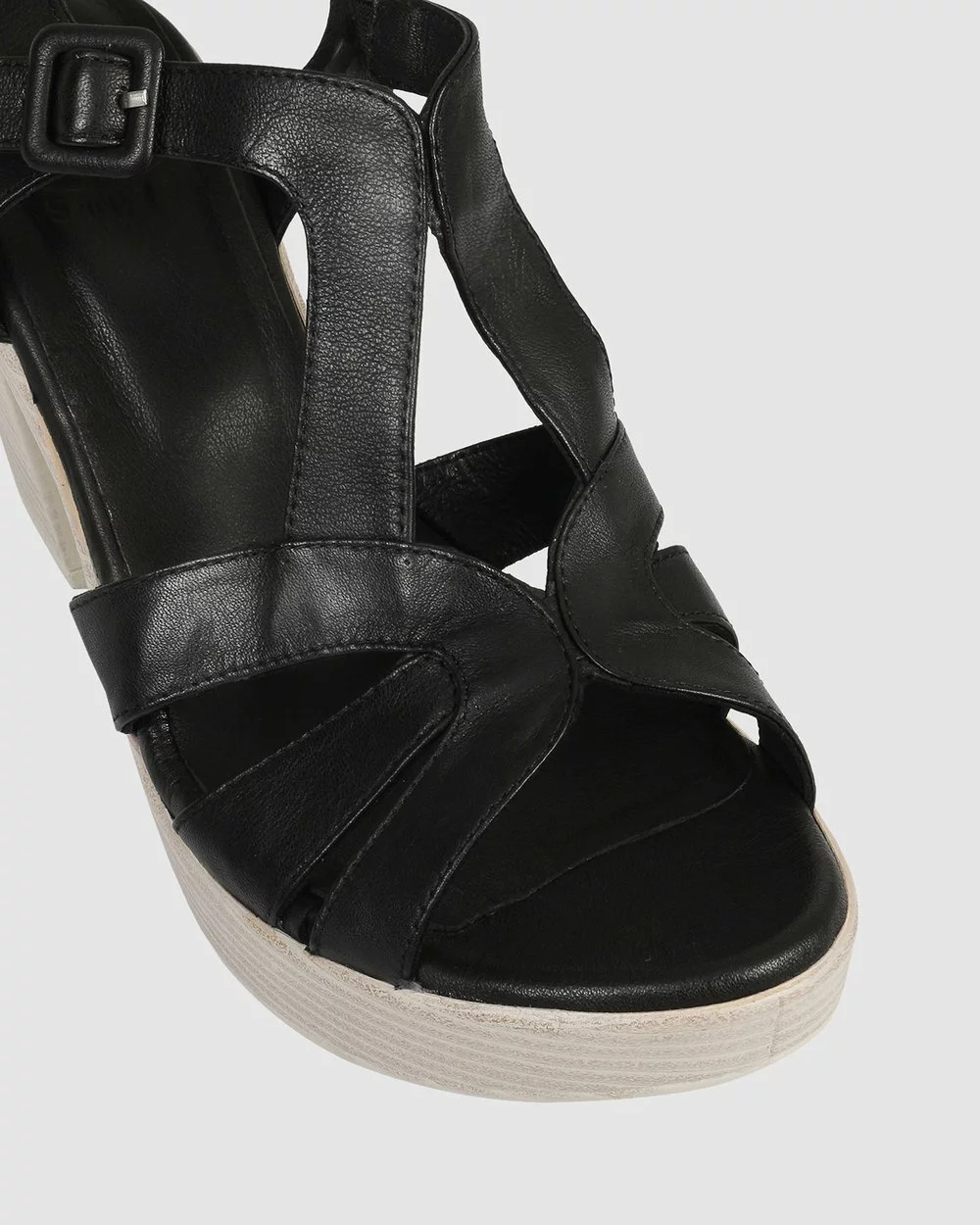 The Amelia Block Sandals by S by Sempre Di is the statement sandal this season. Crafted in the finest of leathers this pair has interlocking leather straps and fastens with an adjustable buckle for extra support. Set on a moulded wedge unit that provides height and comfort. These sandals create a fresh elegance you can style for everyday occasions.