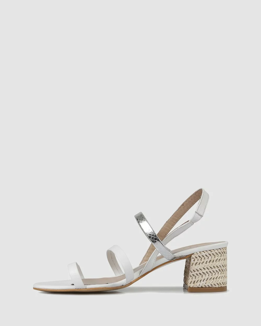 – Leather strappy upper- Leather Lining- Rafia finish block heel- Man made sole- Made in Europe