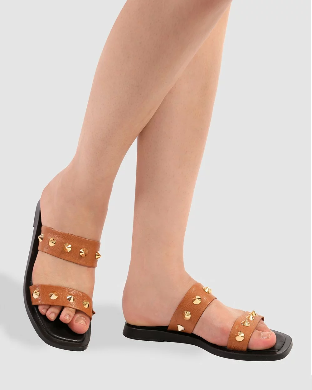 statement pyramid studs and crafted from quality leather. Set on a square toe