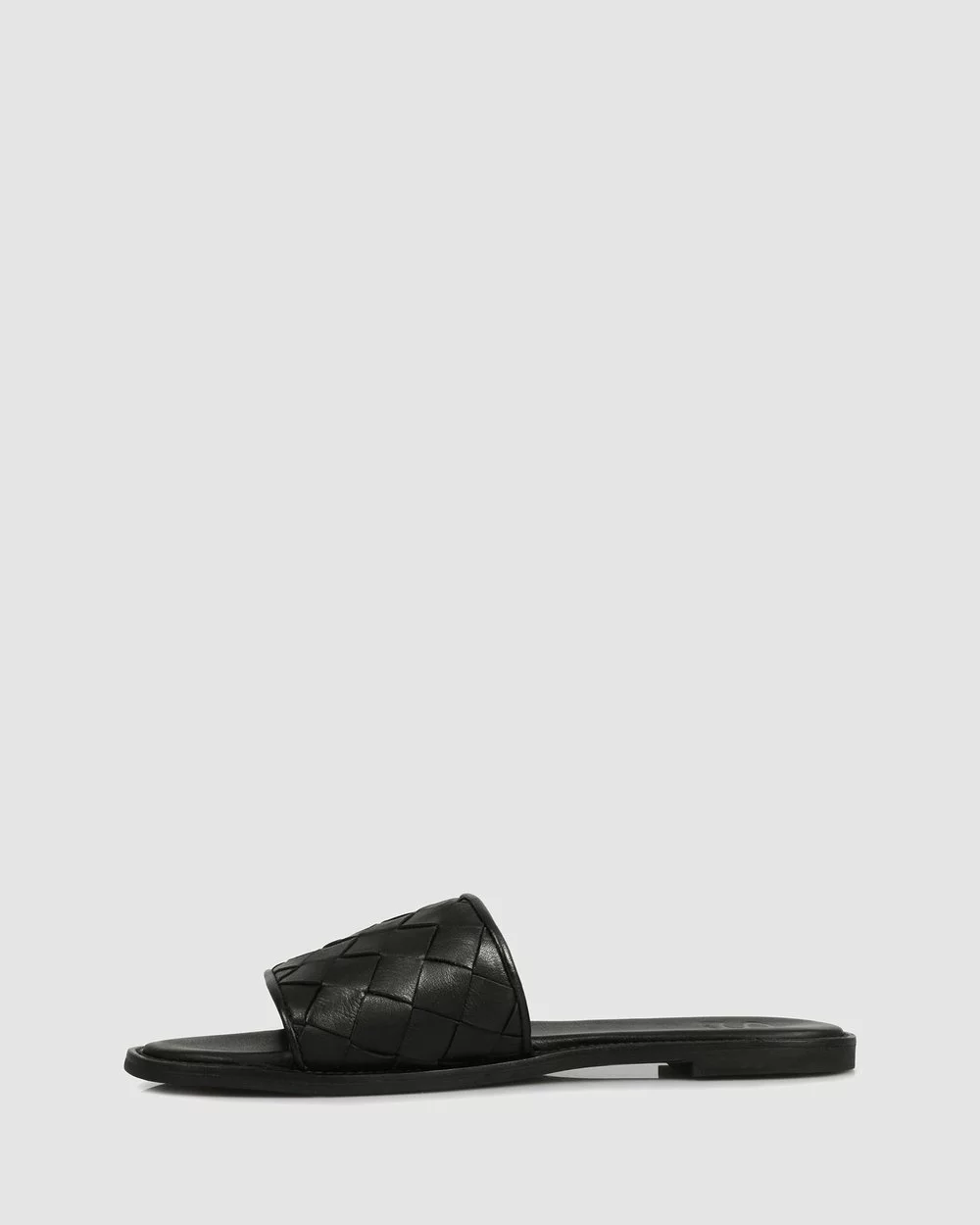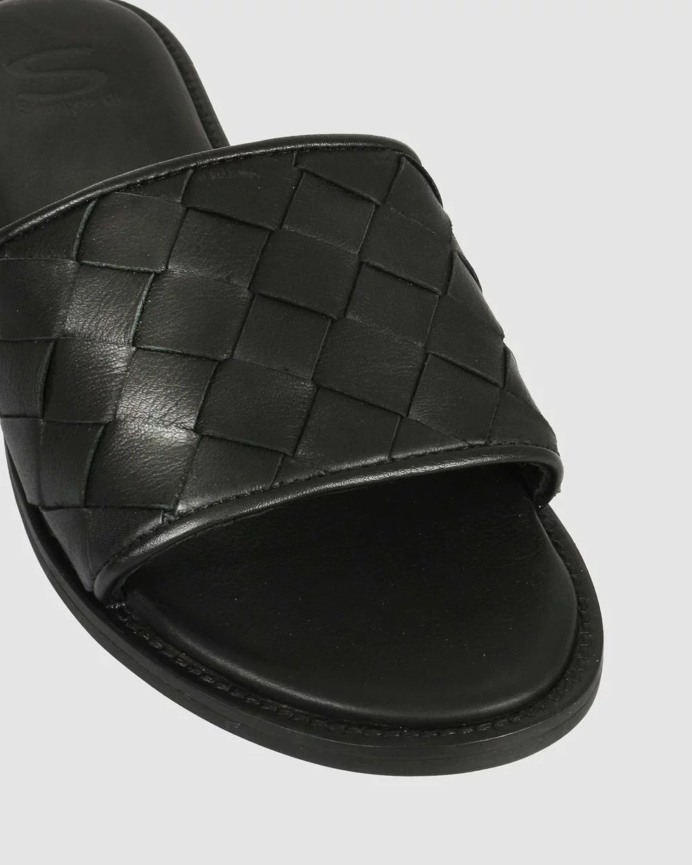 The Shyla Flat Sandals woven leather slip-on slides by S by Sempre Di. Features a textured upper, low flat heel, round toe shape and a padded innersole. Wear them with your favourite maxi outfit.