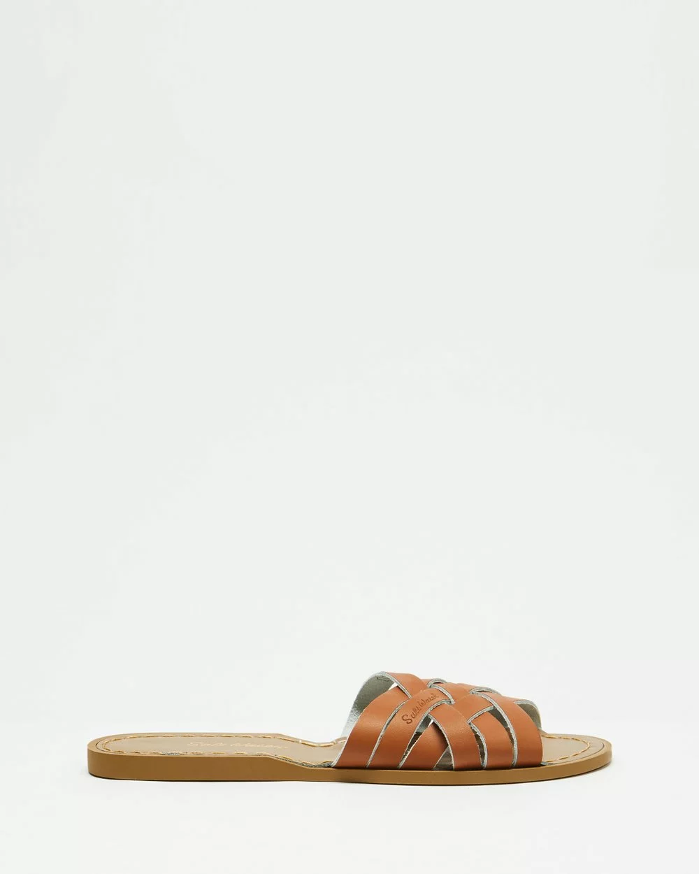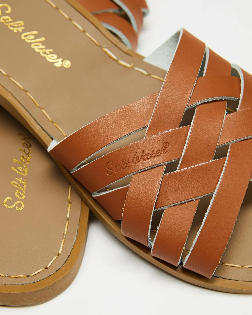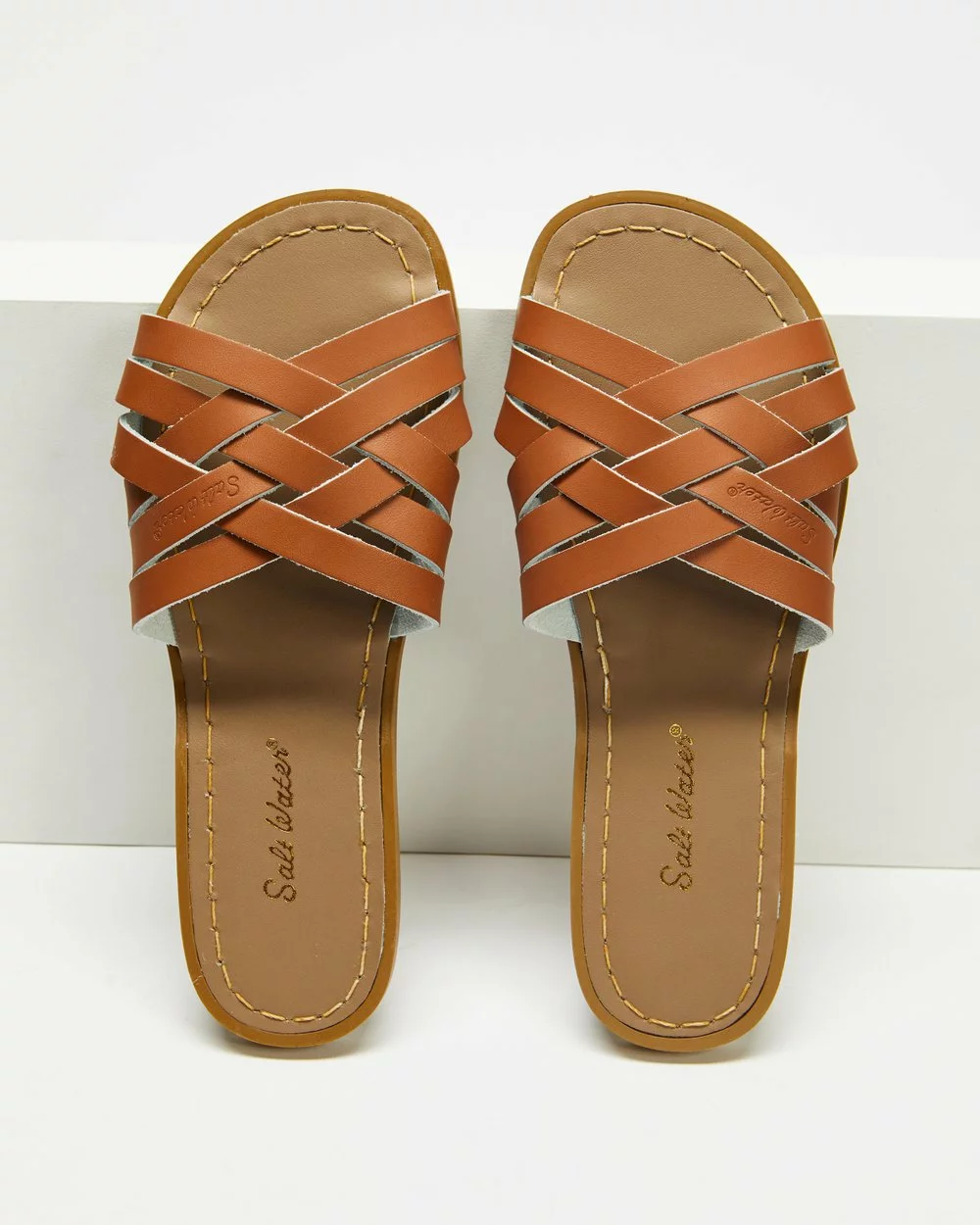 A durable and water-friendly shoe for every age, the Retro Slides from Saltwater Sandals are made from a scuff-resistant leather. The slides boasts six interlocking straps across the front for a comfortable slip-on fit.