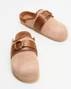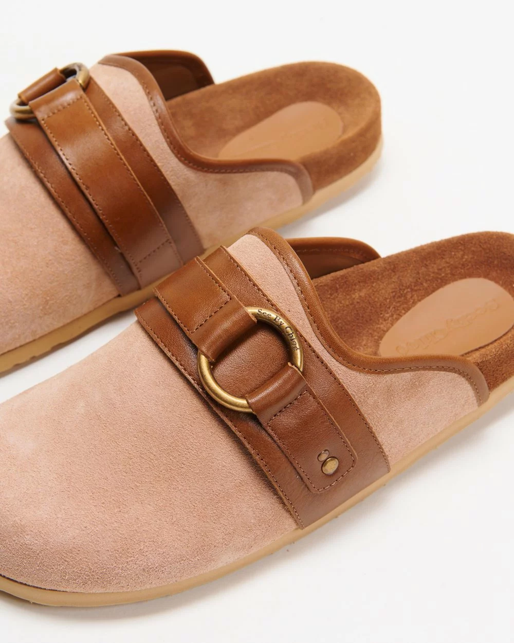 The Gema Mules by See By Chloé are a luxury take on the clog-inspired mules sweeping the fashion scene this season. With a masterfully crafted calf leather suede upper, these slip on shoes are complete with a leather buckled panel.