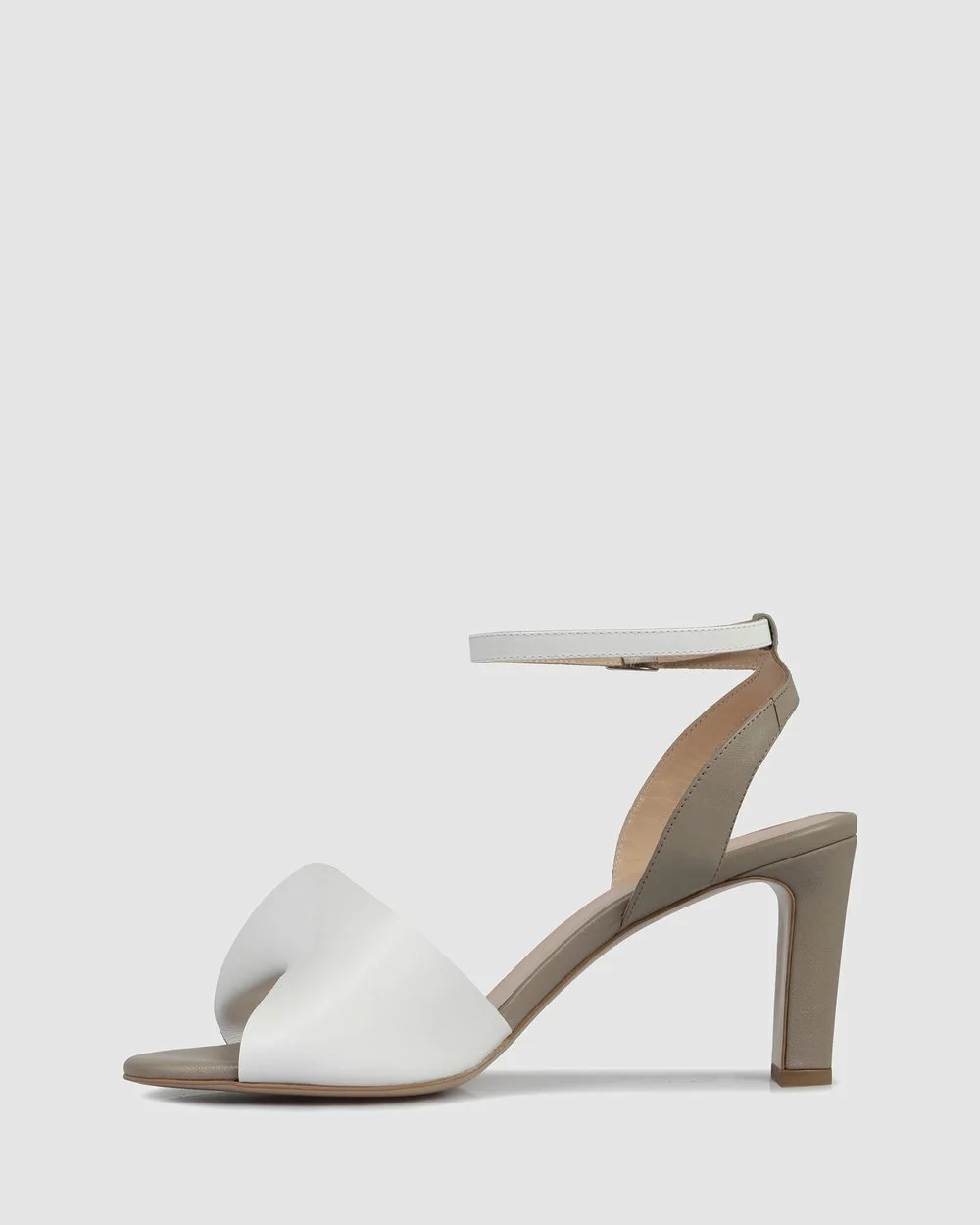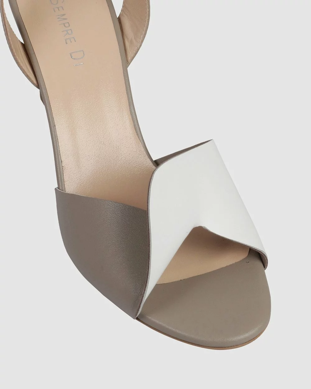 Statement heel the Merrina Sandal by Sempre Di is undoubtedly a “must have” in your wardrobe. Crafted in a two tone leather these heels will be the envy of your friends. The front vamp is detailed in a twist upper to expose the two colours. Set on a mid to hi heel with an adjustable thin ankle strap and an open toe these heels complete the finest detail for any summer wardrobe.
