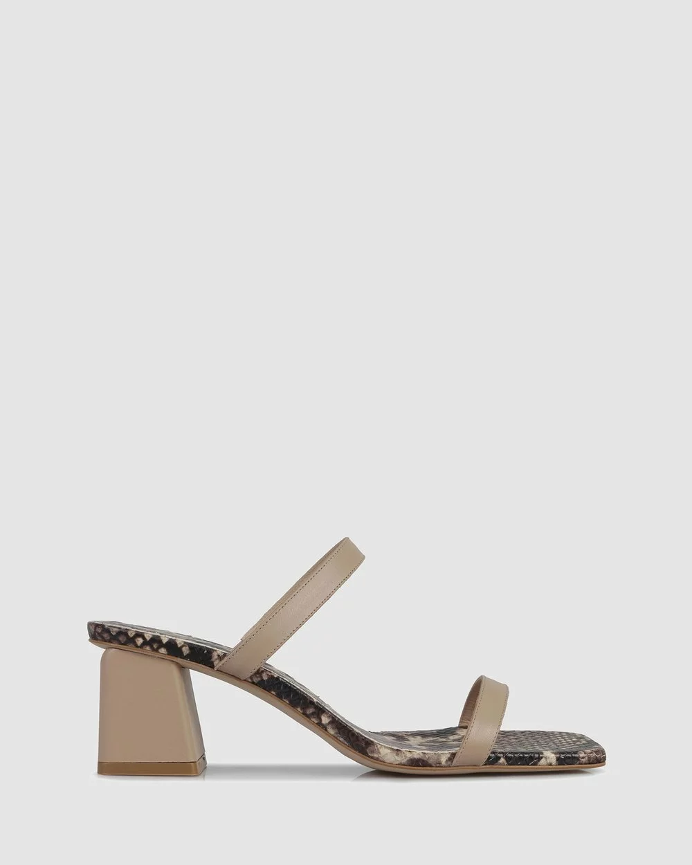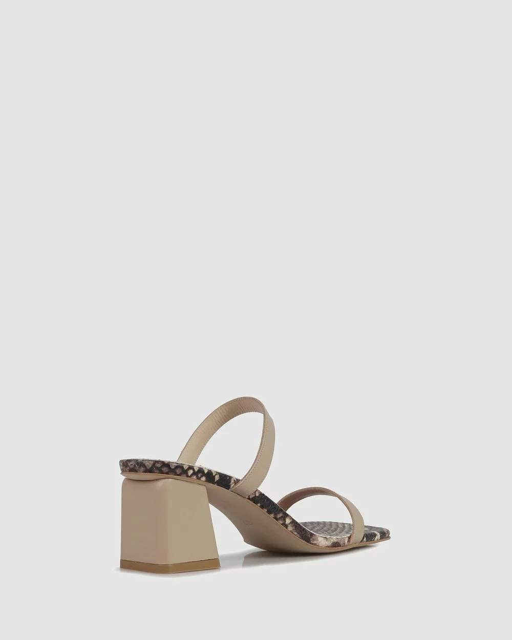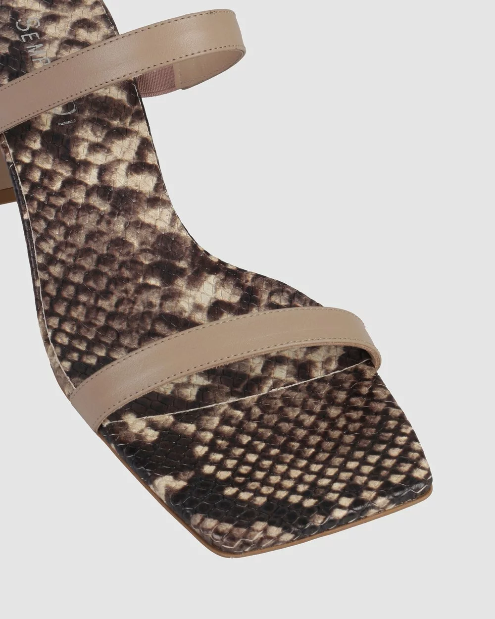 Minimal and clean, the Modica Block Sandals by Sempre Di feature two simple straps for barely-there elegance. Faux snake-print lining adds textural contrast, while a mid-height block heel provides the perfect elevation while maintaining comfort and wearability.