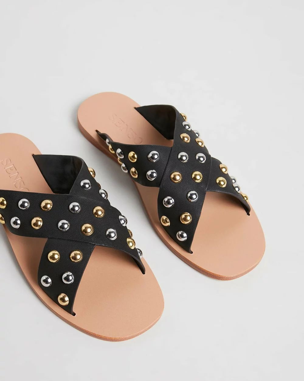 The Breana slides by Senso are an everyday staple with its buttery leather upper, stud embellishment and of-the-moment square toe.
