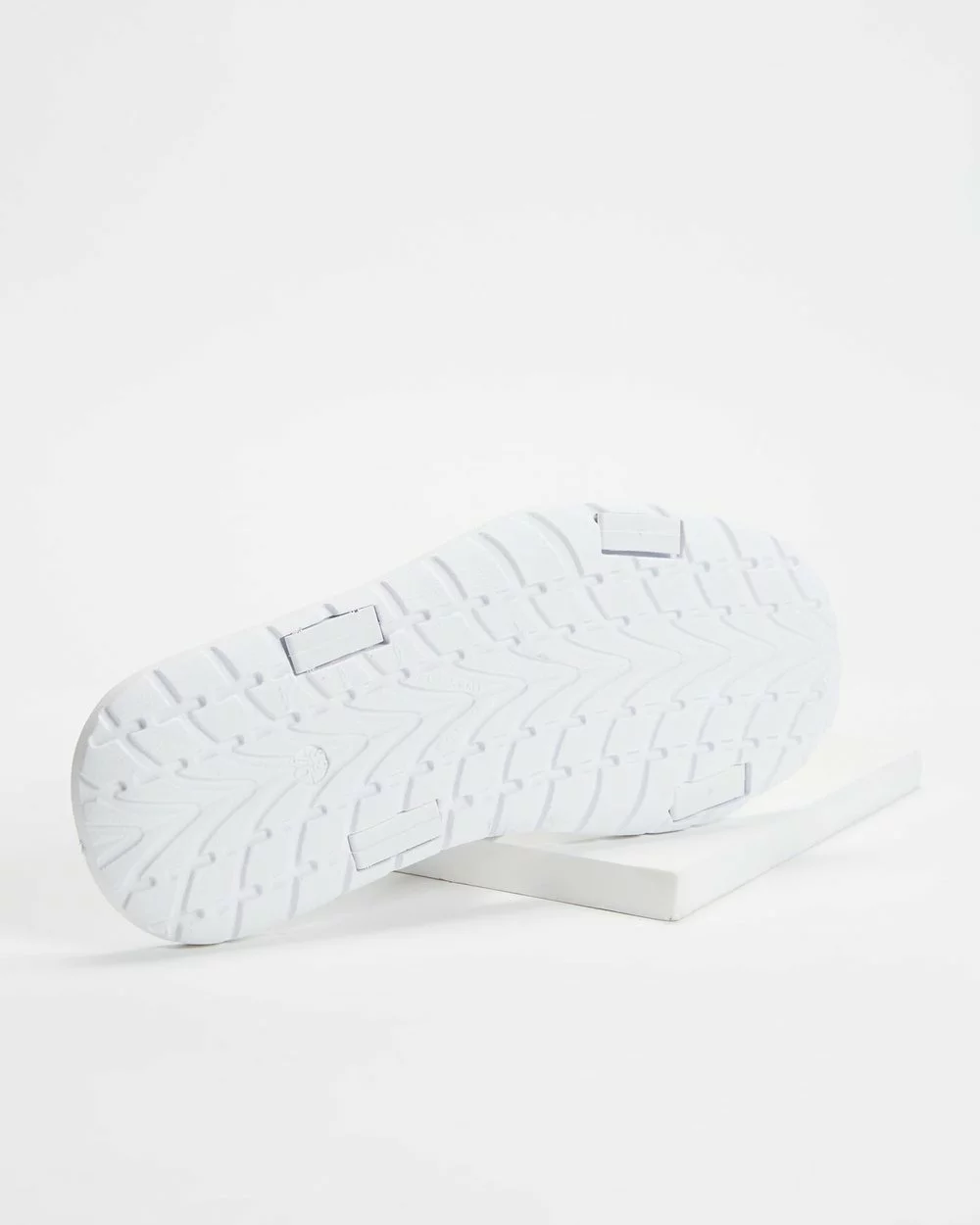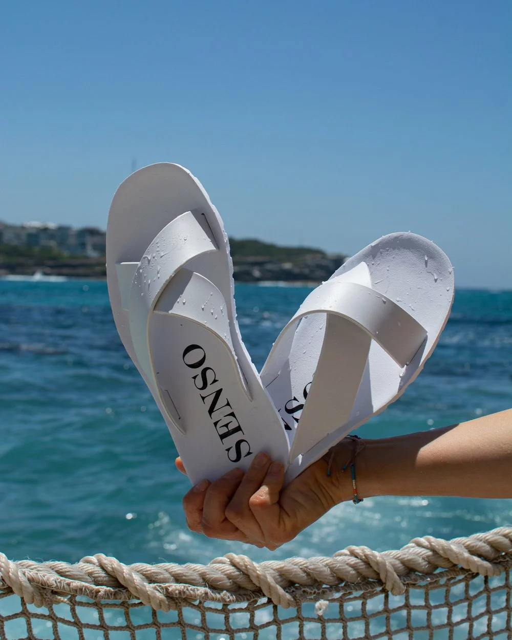 Slide into the Italian-made Frankie slides in an ice white for a resort-come-runway feel to tread brunch and beyond by Australian footwear favourite Senso.