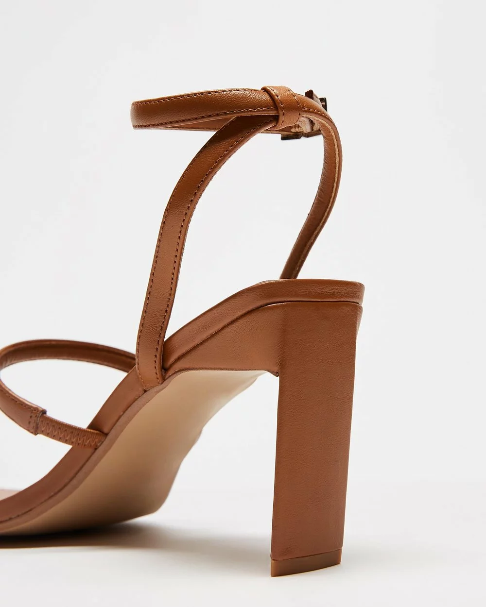 – Square toe; buckle ankle strap fastening; 8.5cm angular heel