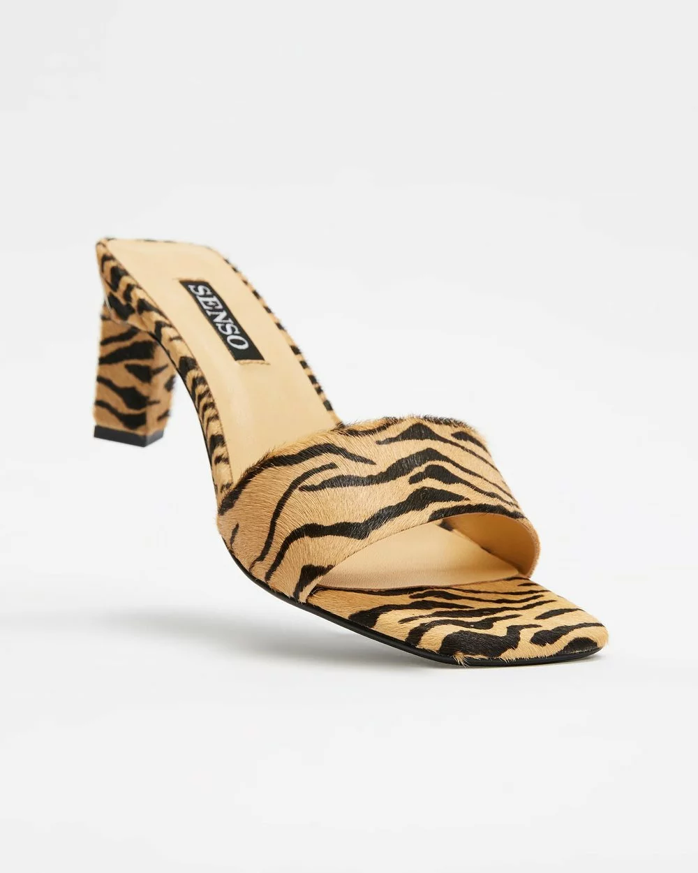 The textured Maisy III mule by Senso boast a trend-focused architectural triangle block heel and open square toe. These slip on heels encourage playful styling for any fashion-enthused wardrobe.