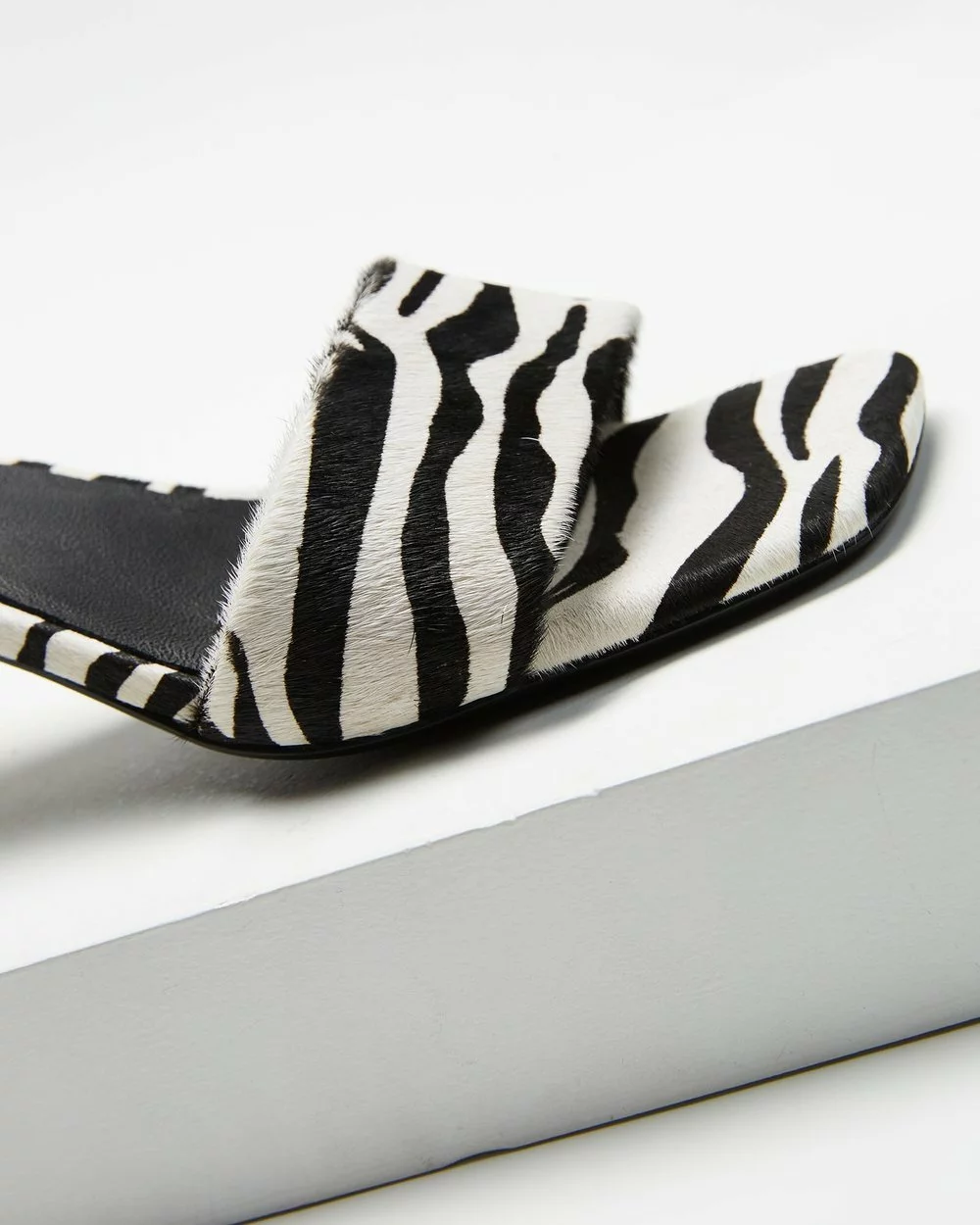 – Zebra print pony hair leather upper