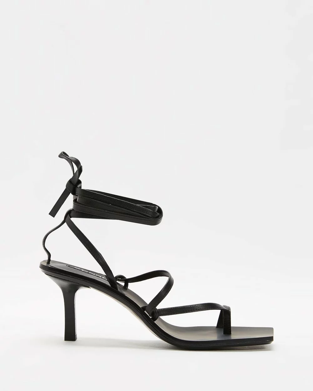 – Thong-style toe post; wrap-around ankle ties