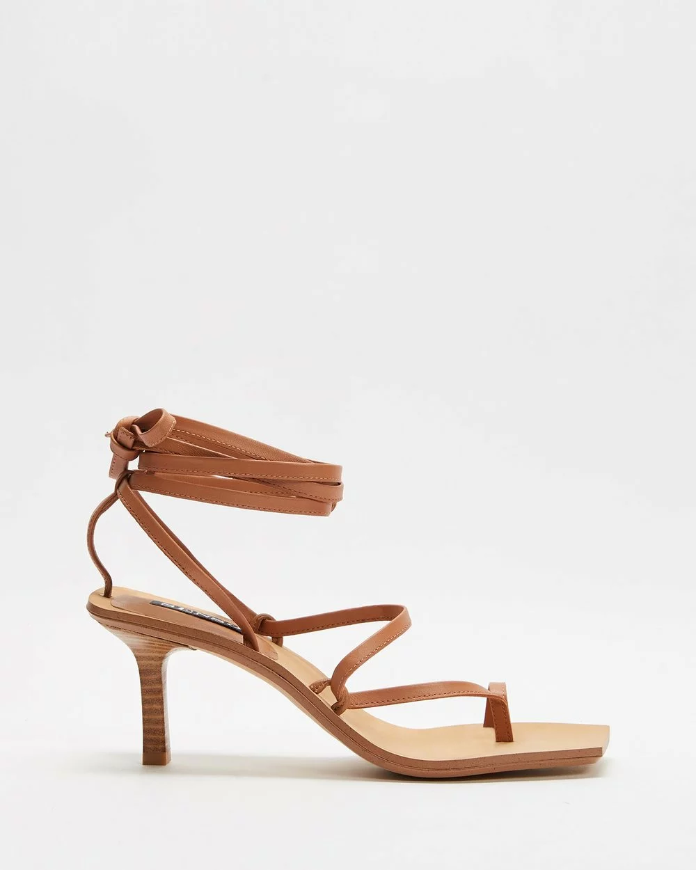 – Thong-style toe post; wrap-around ankle ties