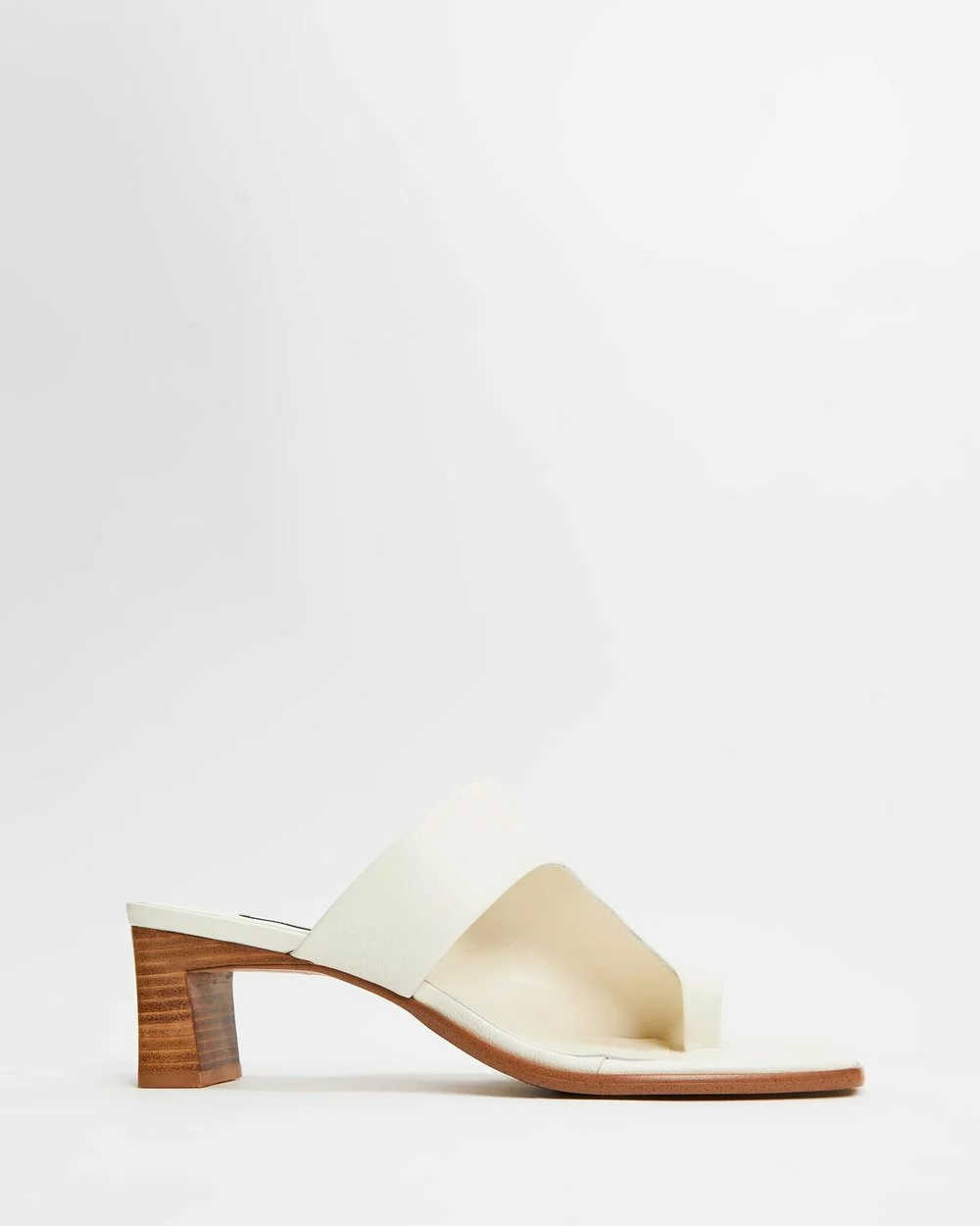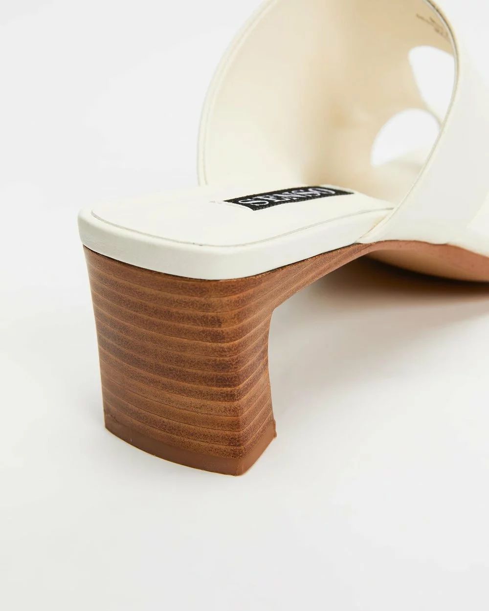Worked in an asymmetrical soft grain leather and rounded wooden heel to amalgamate the best of mid-century design, the Vivienne chunky mules from Australian-born Senso are the dreamy art-deco denomination of the season (and #TBT’s thereafter).