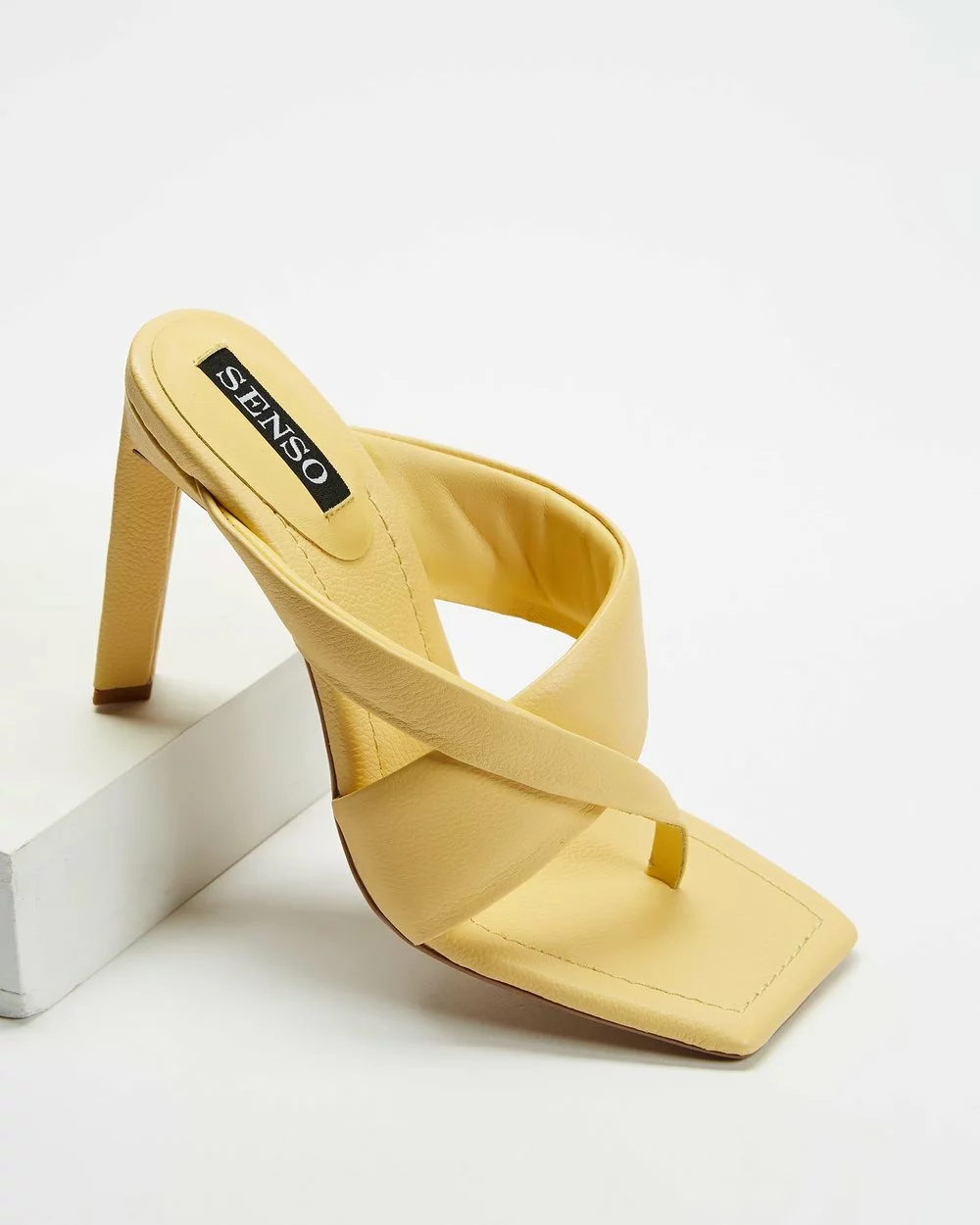 Worked in a yellow zest soft grain leather that hallmarks muted mid-century palettes, the Sofie II chunky mule heels from Australian-born Senso is the dreamy art-deco denomination of the season (and #TBT’s thereafter).