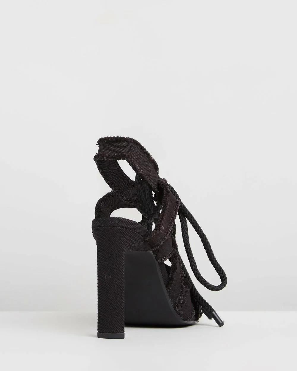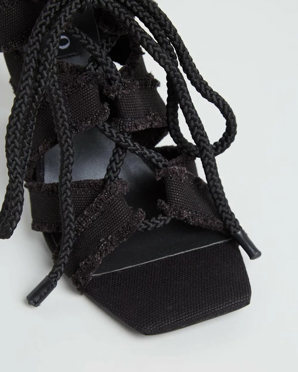 The Senso Sully heels feature a fringed canvas upper, an of-the-moment squared-toe silhouette and lace-up ankle fastening.