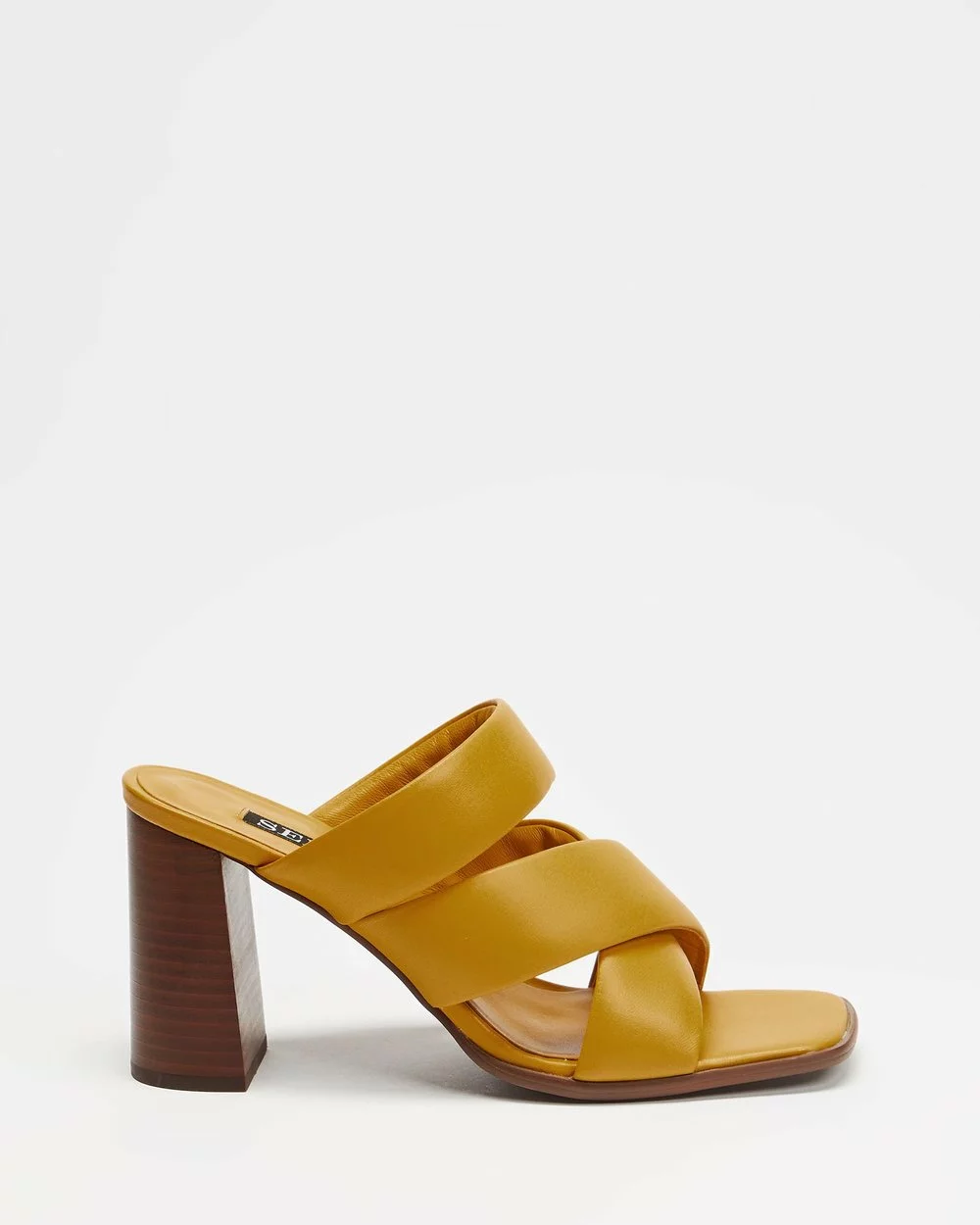 Worked in a tropical soft grain leather hallmarking muted mid-century palettes, the Verra chunky mule heels from Australian-born Senso are the dreamy art-deco denomination of the season (and #TBT's thereafter).