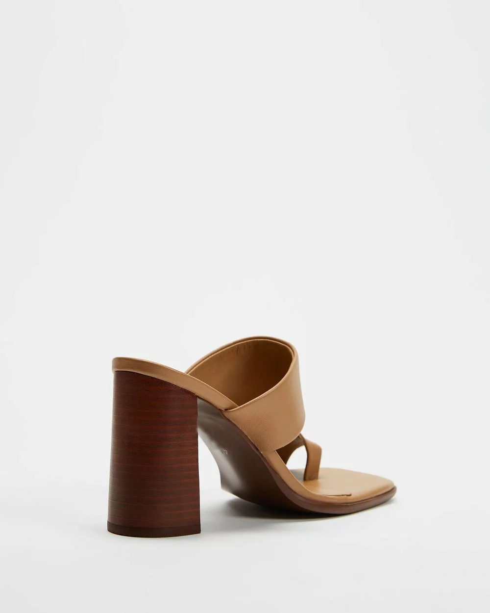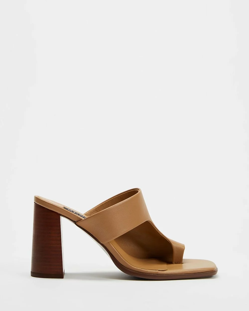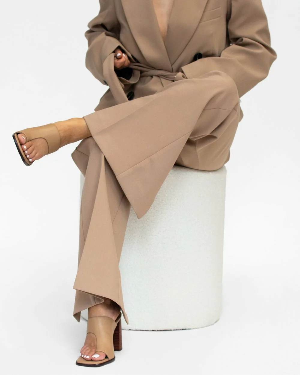 Worked in an asymmetrical soft grain leather and rounded wooden heel to amalgamate the best of mid-century design, the Vivienne chunky mules from Australian-born Senso are the dreamy art-deco denomination of the season (and #TBT’s thereafter).