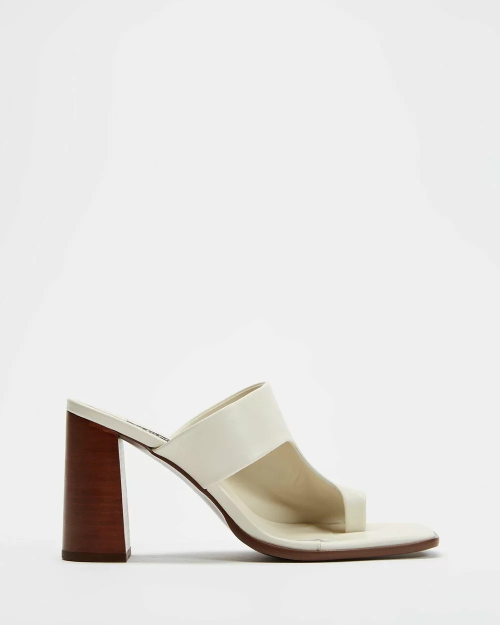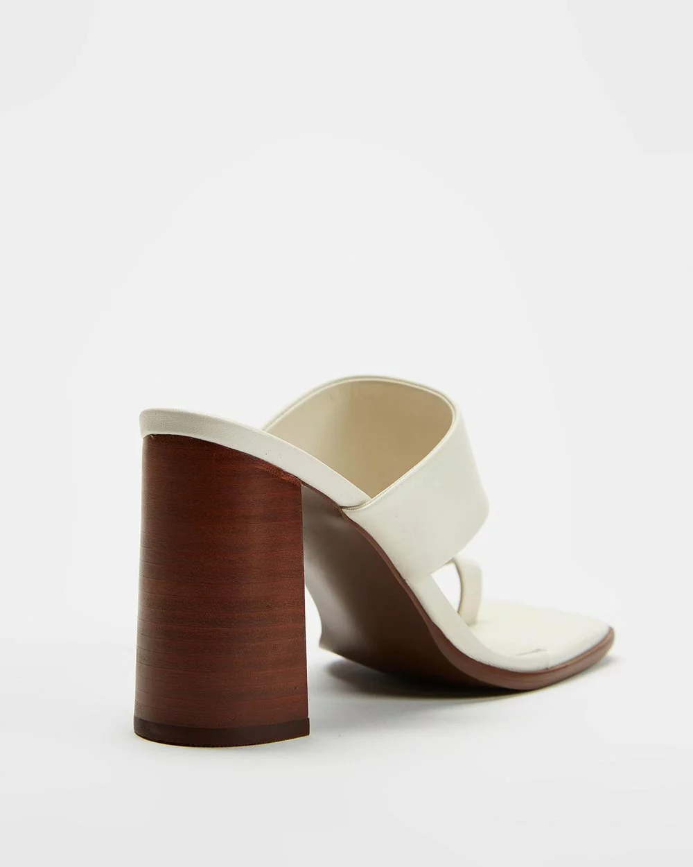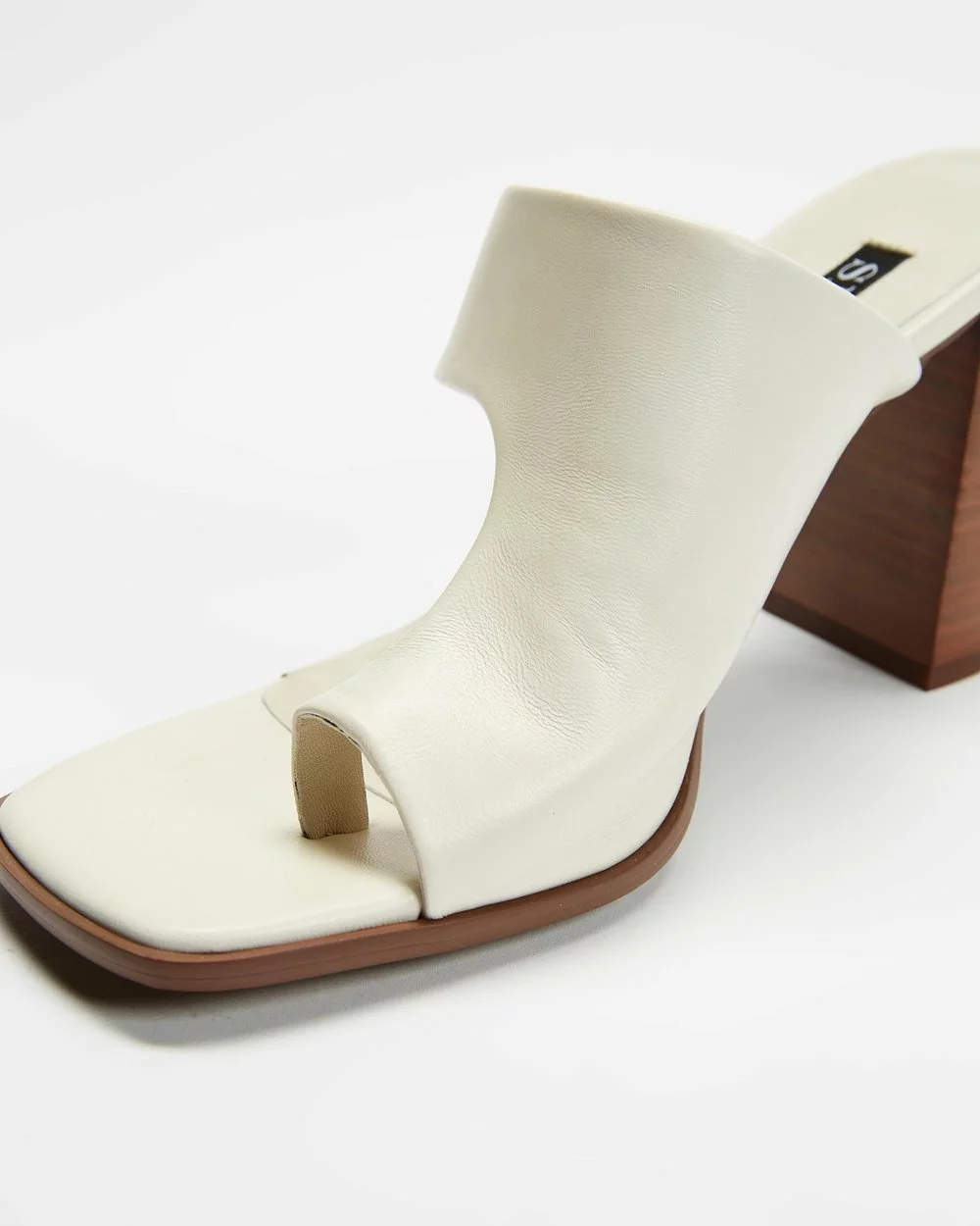 Worked in an asymmetrical soft grain leather and rounded wooden heel to amalgamate the best of mid-century design, the Vivienne chunky mules from Australian-born Senso are the dreamy art-deco denomination of the season (and #TBT’s thereafter).