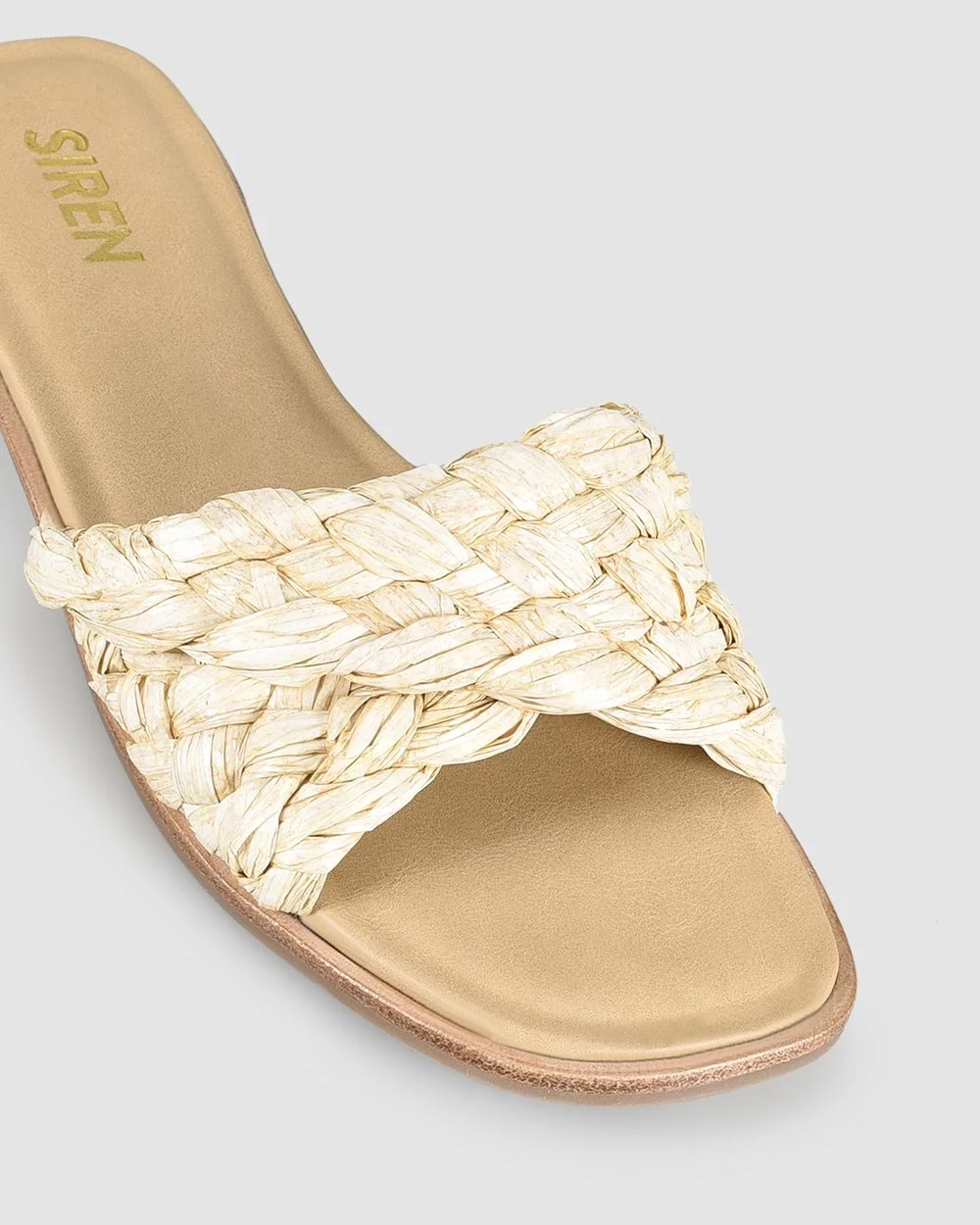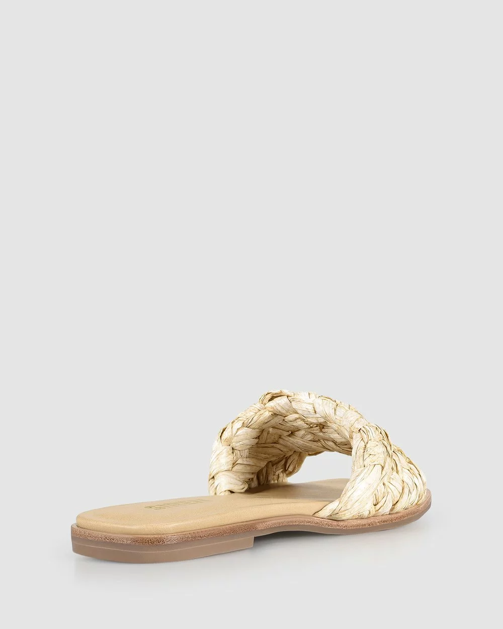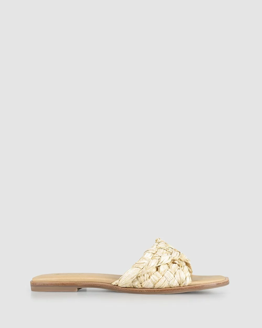 – Features: Cushioned insole, raffia woven upper with twist design, angular toe shape.
