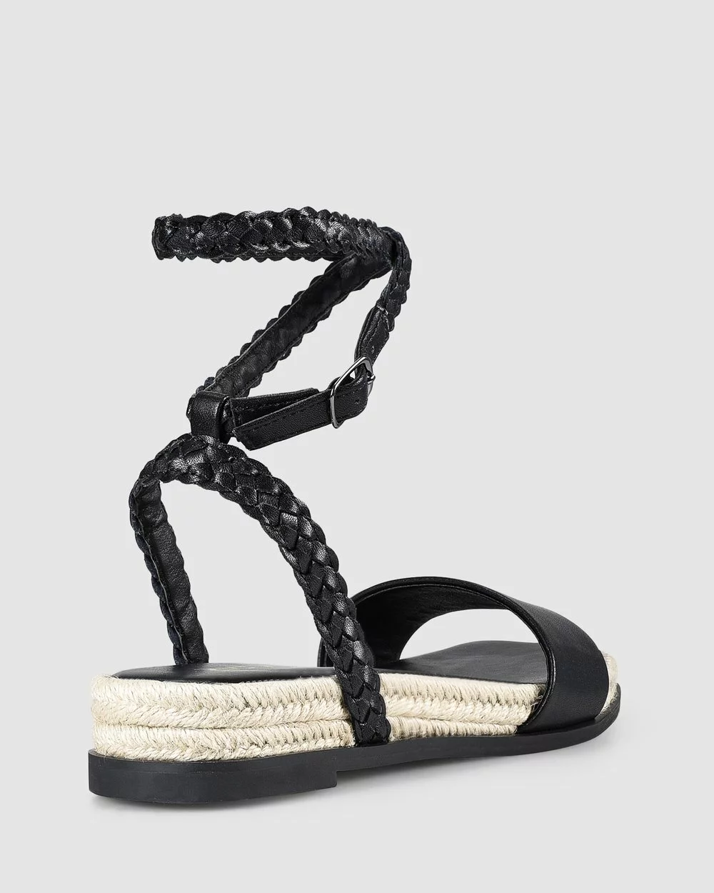 Features: Padded insole, plaited ankle strap, espadrille wedge heel, softly squared toe shape & rubber sole.
