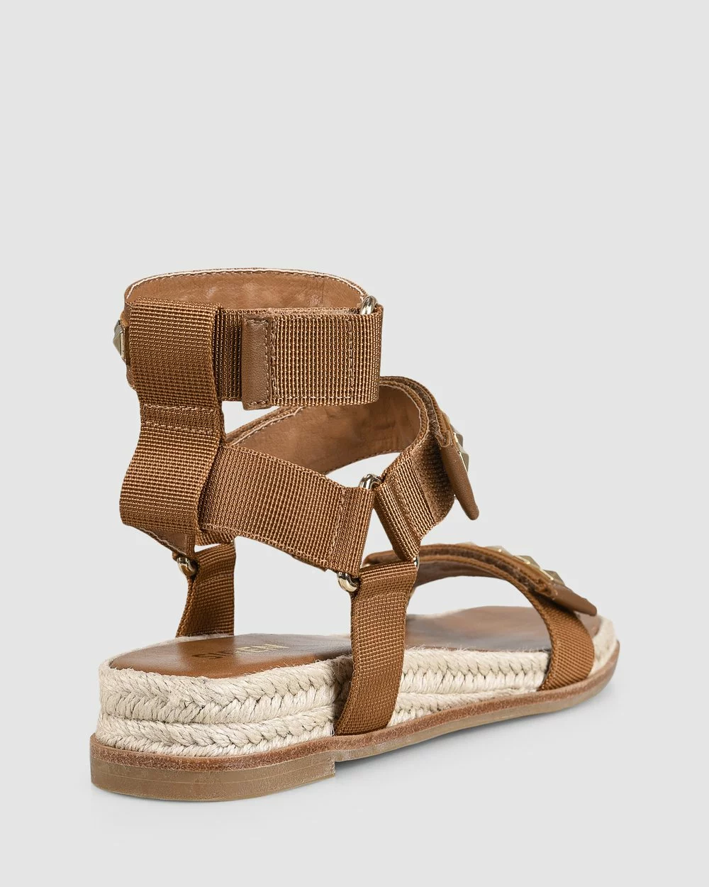 Features: Studded hardware, velcro strap fastening & plaited raffia detail around the sole.