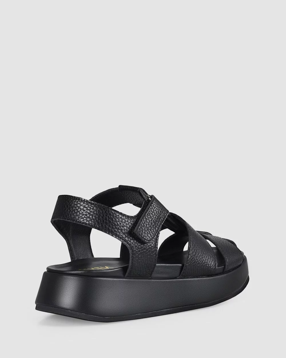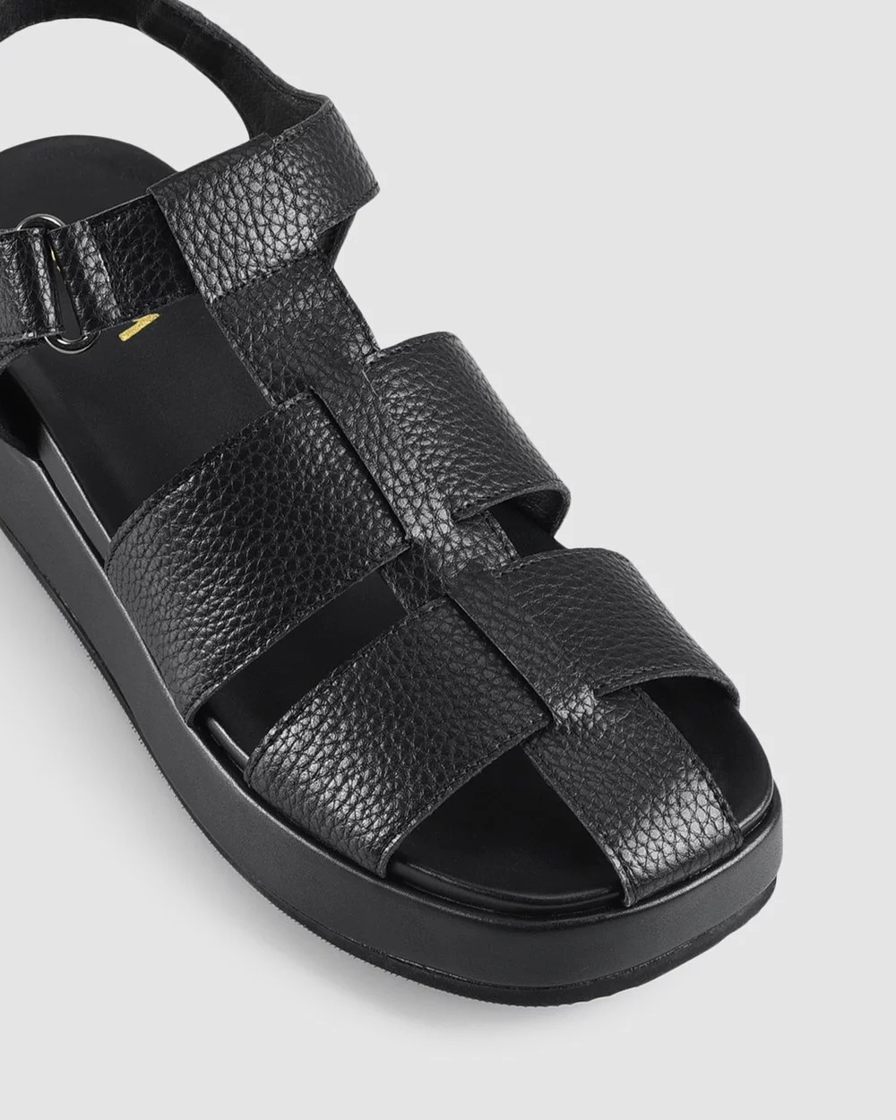 Features: Cushioned footbed, fisherman style upper, adjustable velcro fastening.