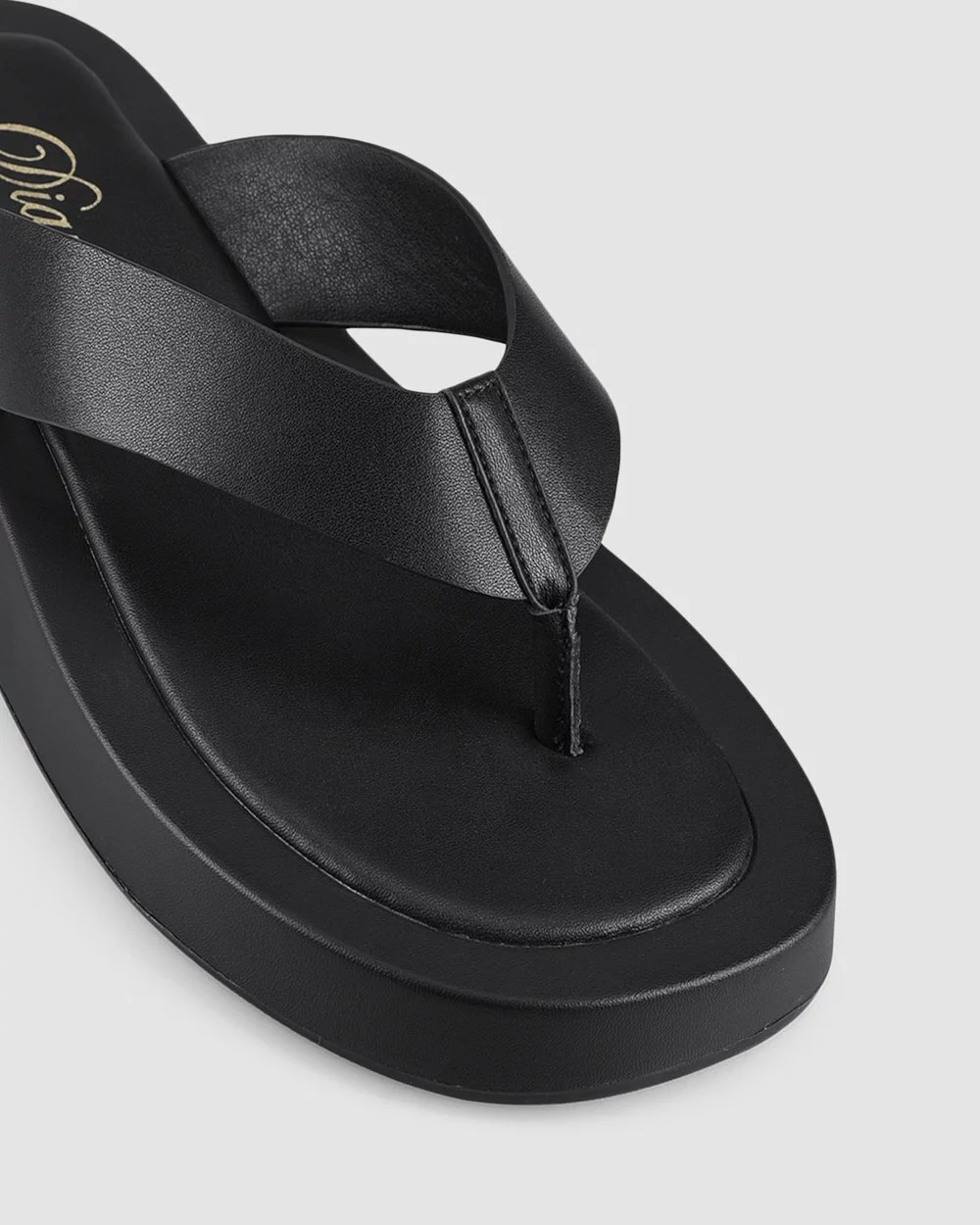 – Features: Thong style upper, chunky sole with rubber track, cushioned insole.
