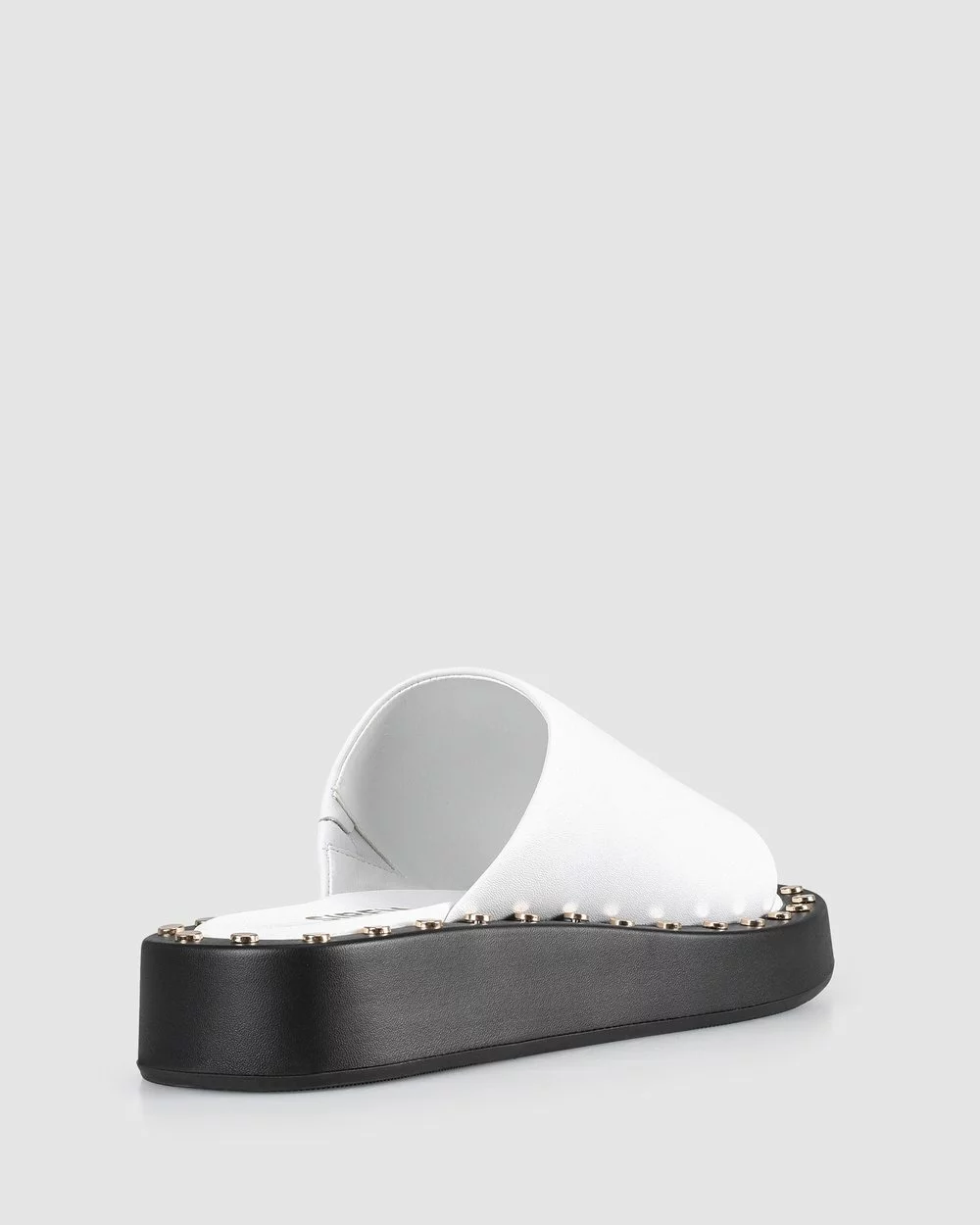Features: Smooth leather upper, press stud hardware, chunky contrast sole.