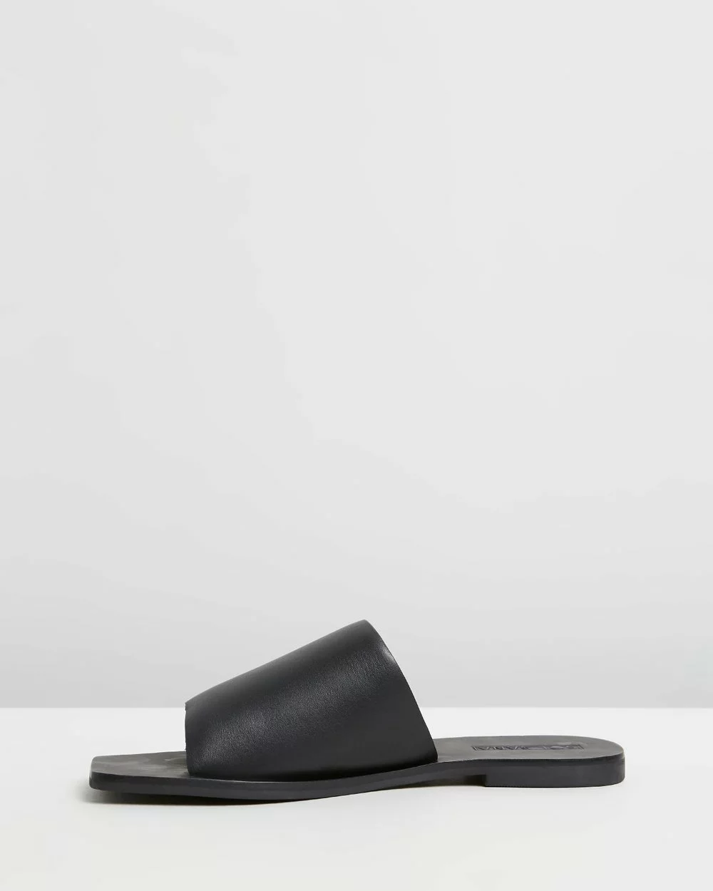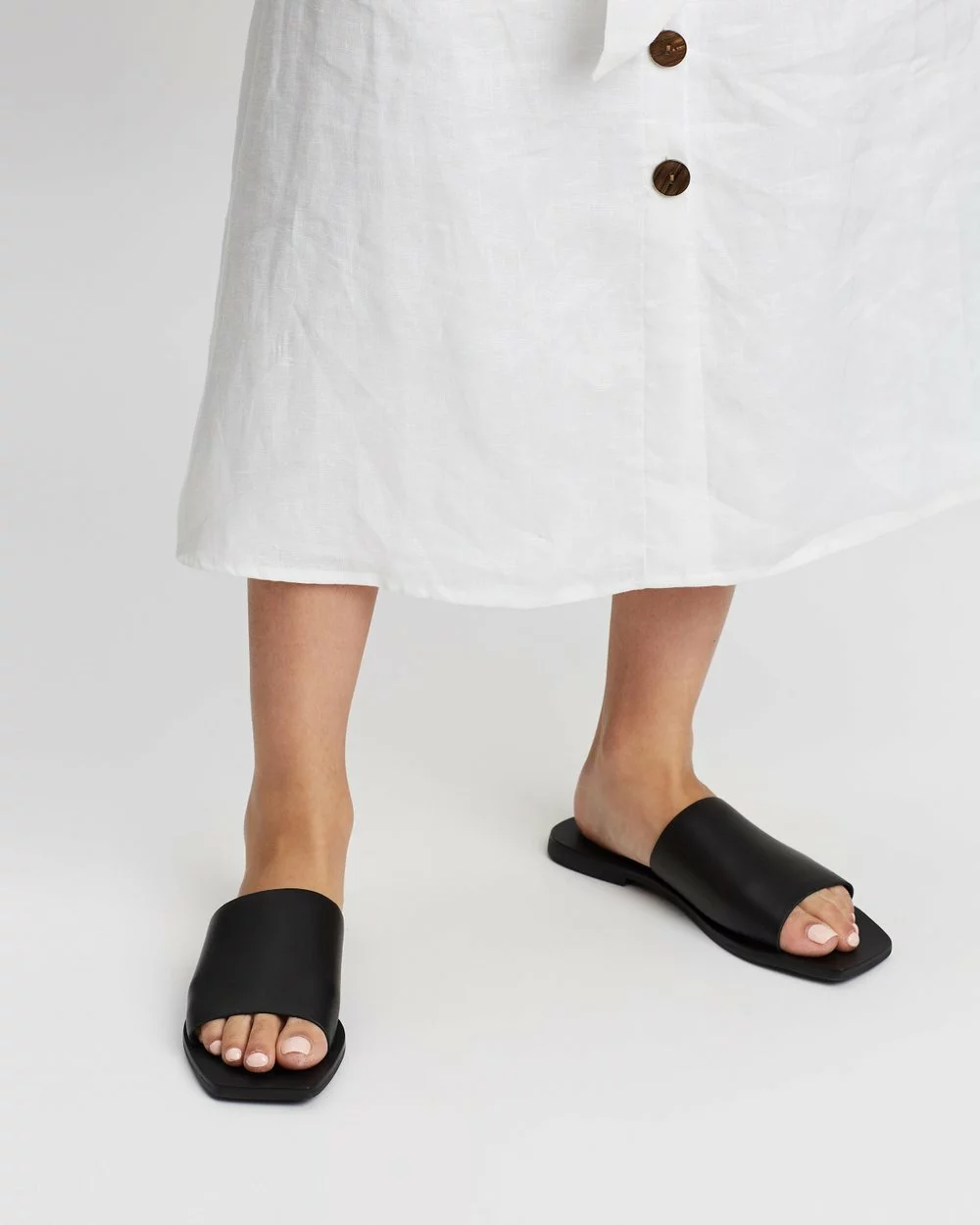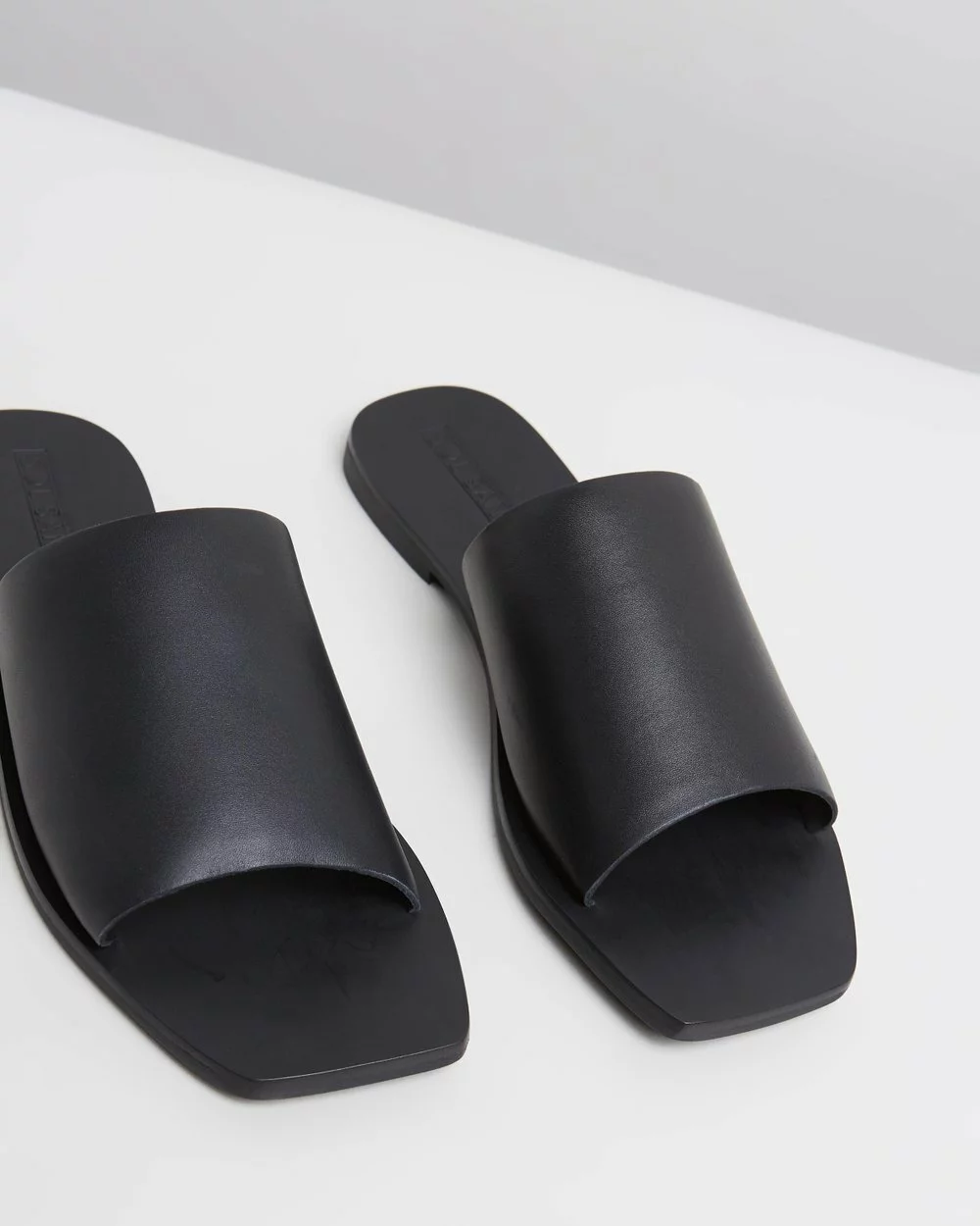 Clean and simple, the Mila Slides capture the best of Sol Sana’s minimalist aesthetic with their single vamp strap and squared open toe.