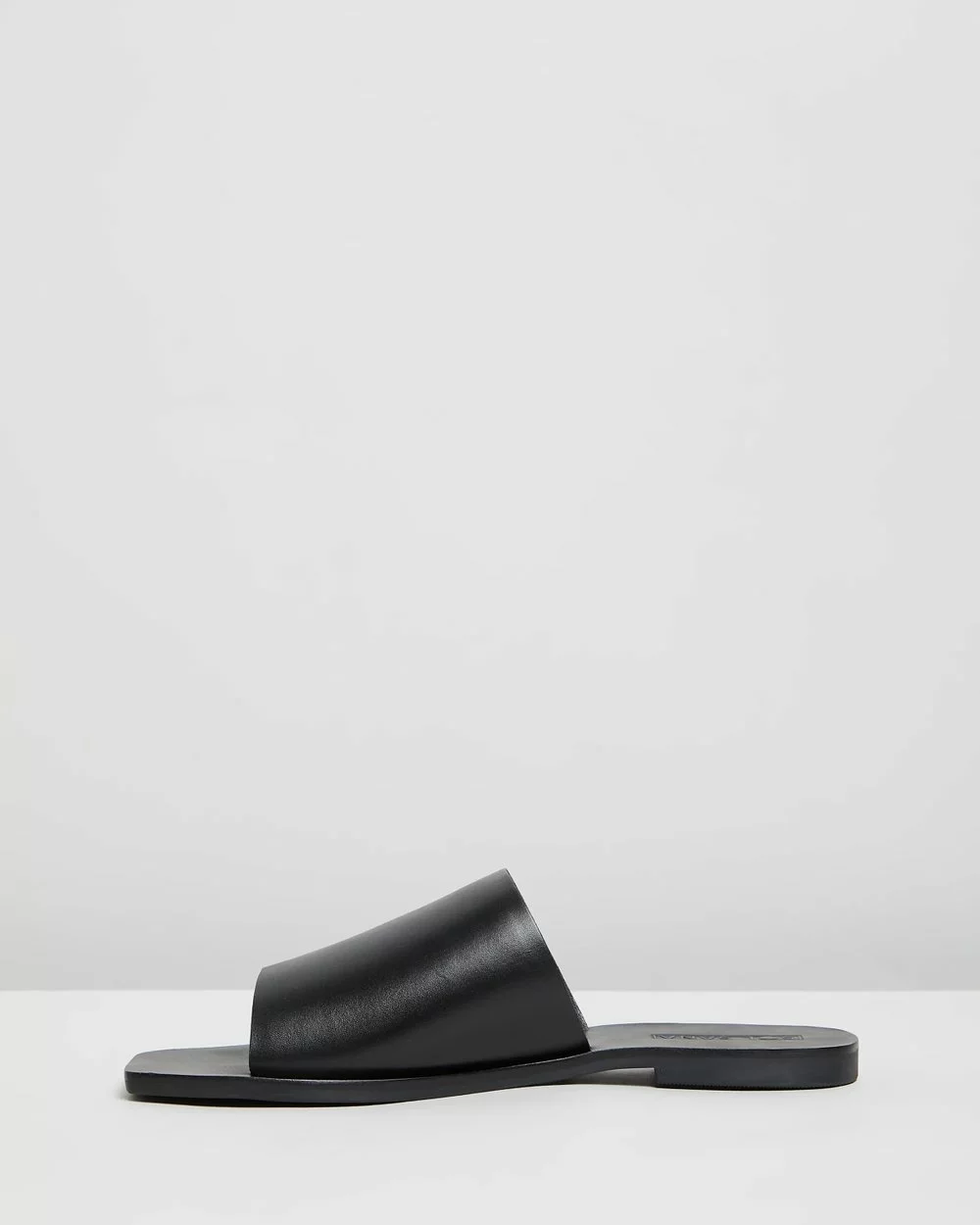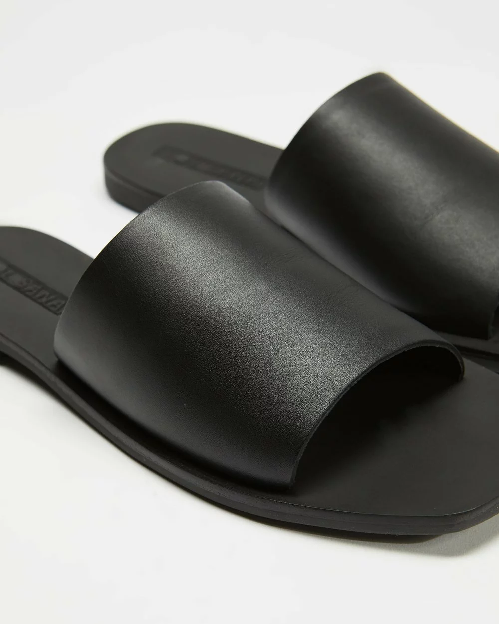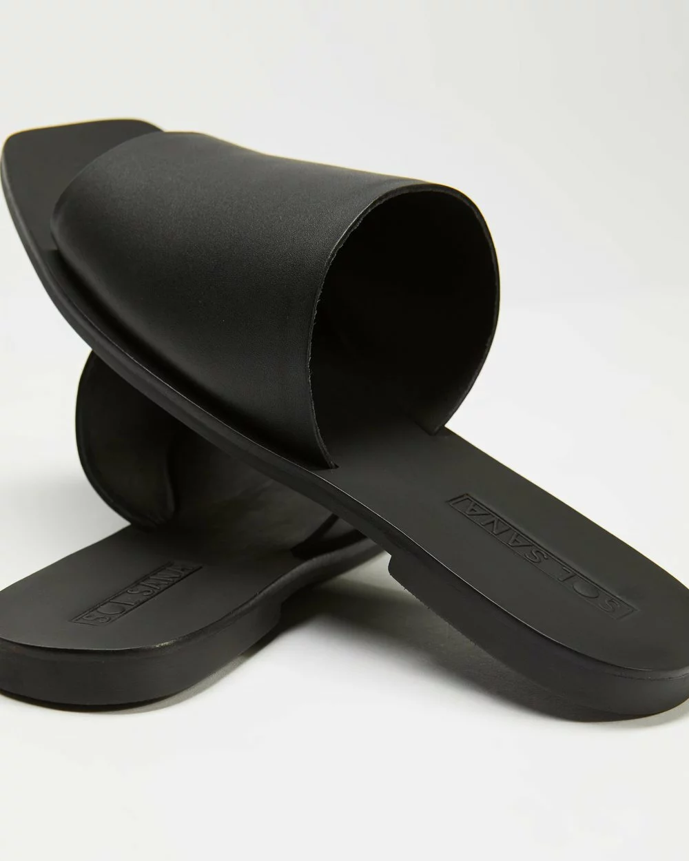 Clean and simple, the Mila Slides capture the best of Sol Sana’s minimalist aesthetic with their single vamp strap and squared open toe.