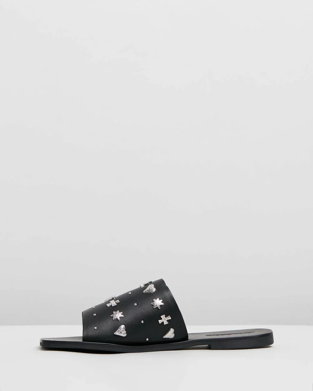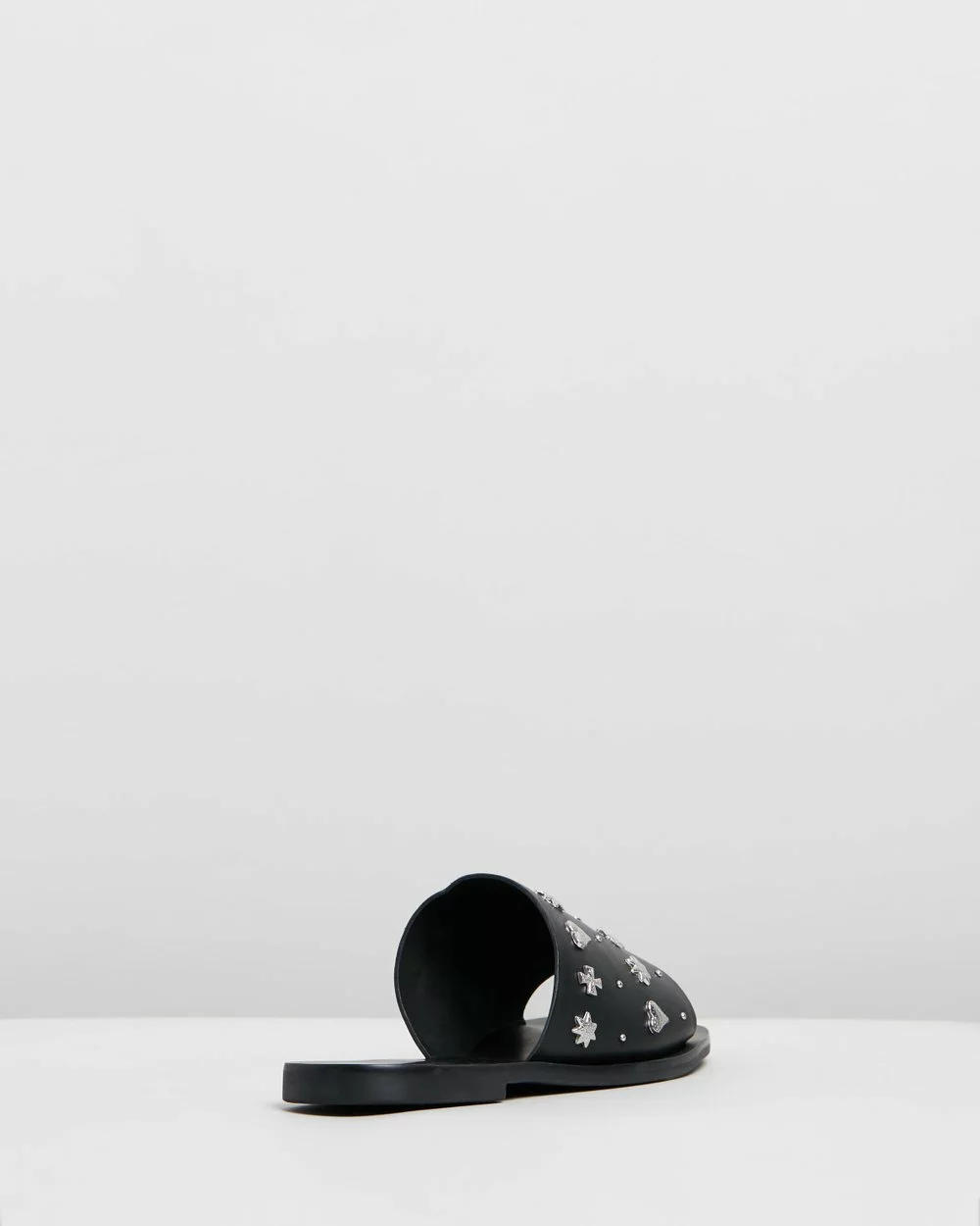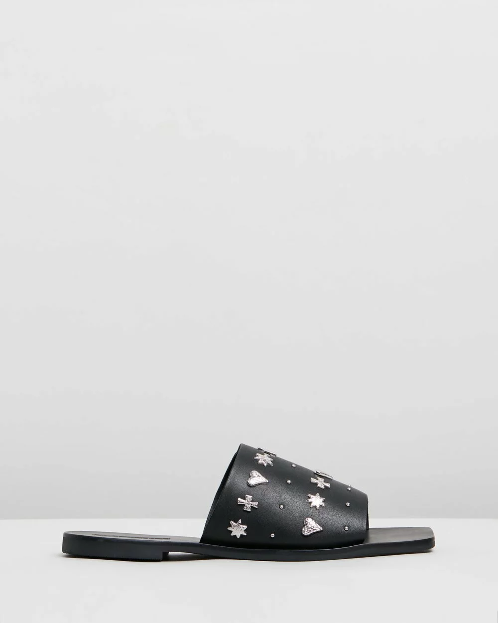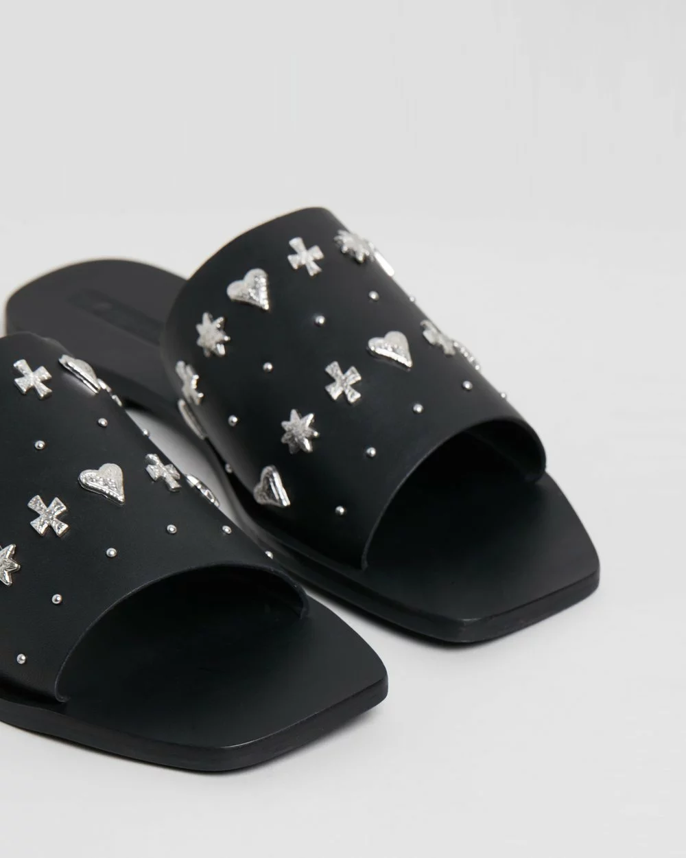 An edgy take on a signature style, the Mila Stud Slides capture the best of Sol Sana’s minimalist aesthetic with their single vamp strap and squared open toe.