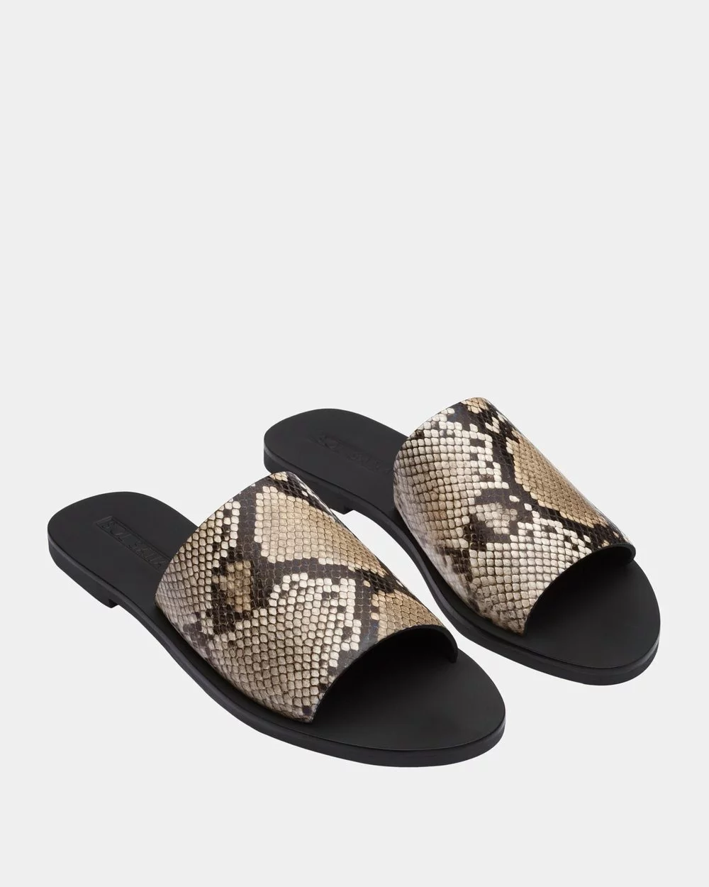 Featuring a snakeskin-embossed, wide strap across the vamp, the Sol Sana Teresa Slides are a sleek, minimalist style for everyday.