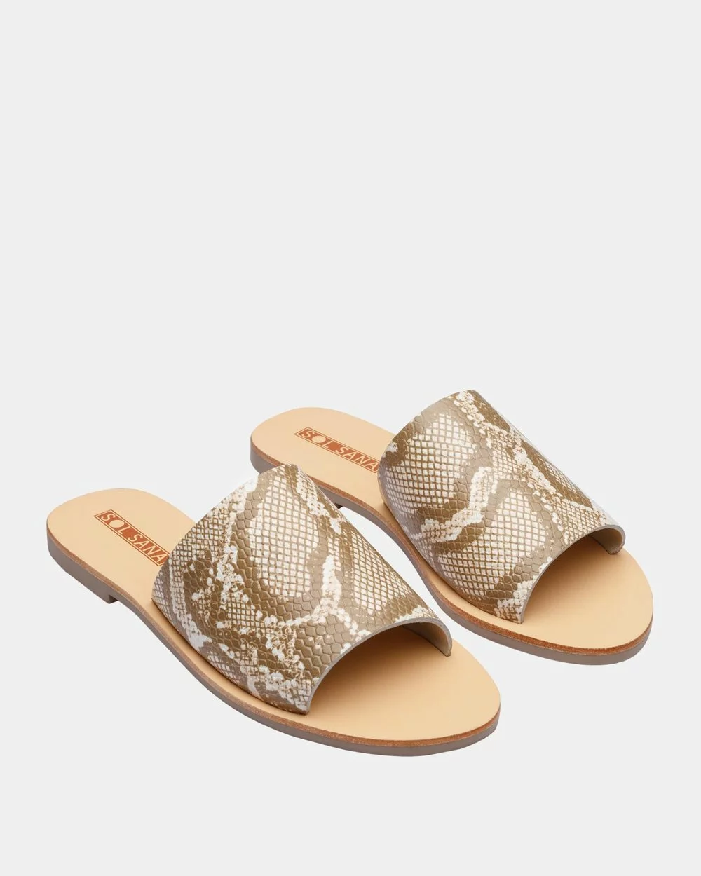 Featuring a snakeskin-embossed, wide strap across the vamp, the Sol Sana Teresa Slides are a sleek, minimalist style for everyday.