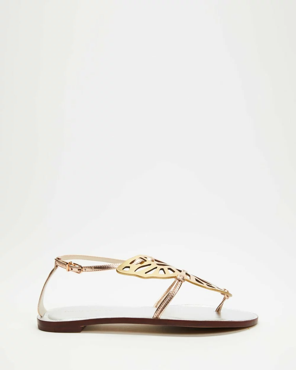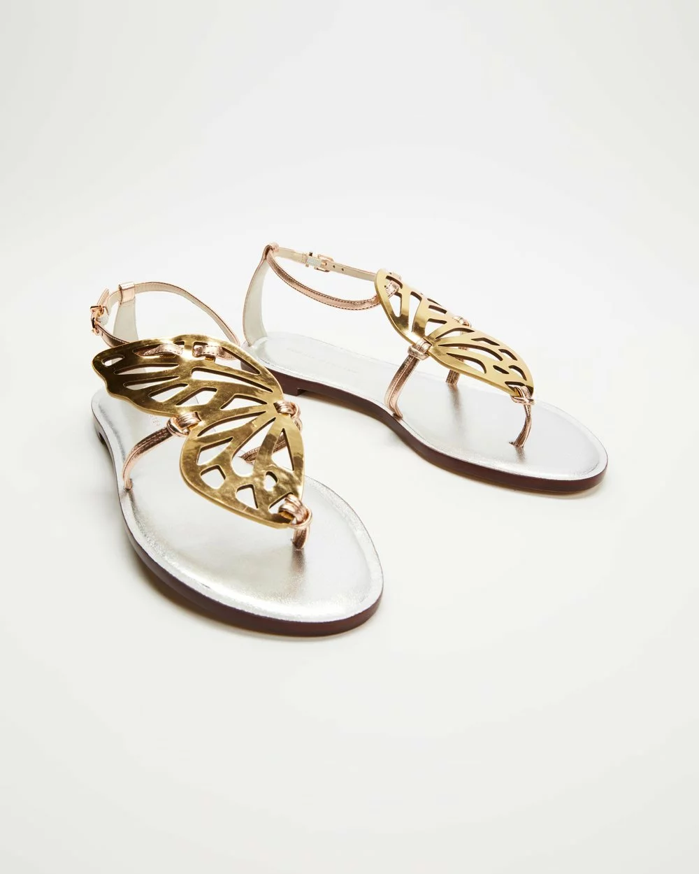 – Leather upper; metallic laser-cut butterfly ring detailing