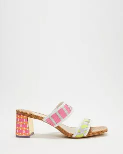 Add a pop of sophisticated colour to your look with the flared block heel Celia Mid Mules by Sophia Webster.