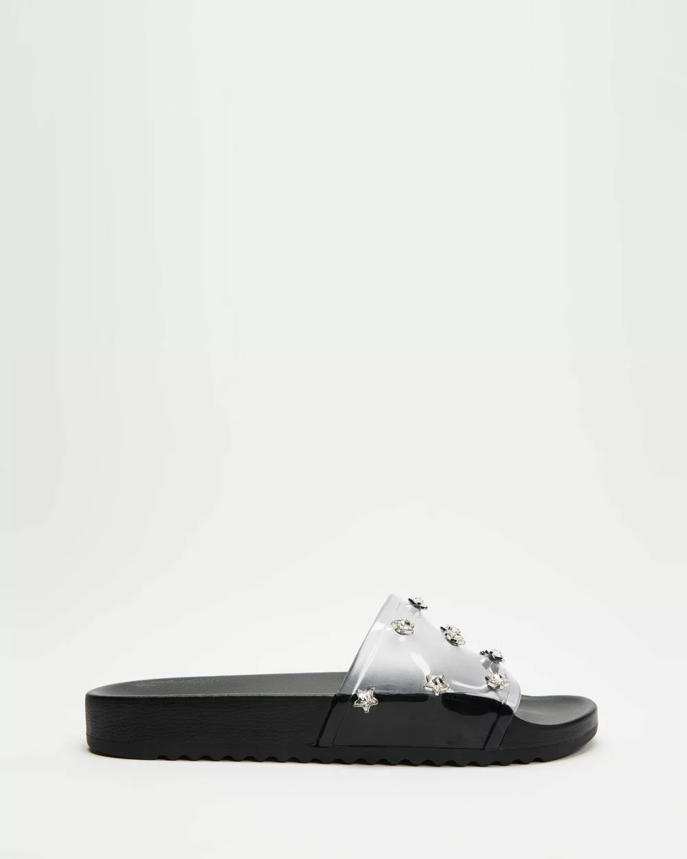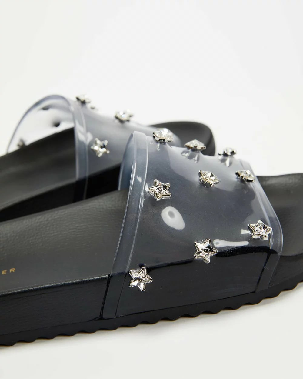 – Vinyl wide vamp strap with star shaped crystal embellishments