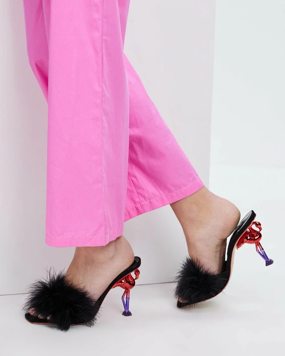 Exuding an elegant flair the Flo Flamingo Mules from designer Sophia Webster will ensure you’ll have all eyes drawn on you when you arrive to the party.