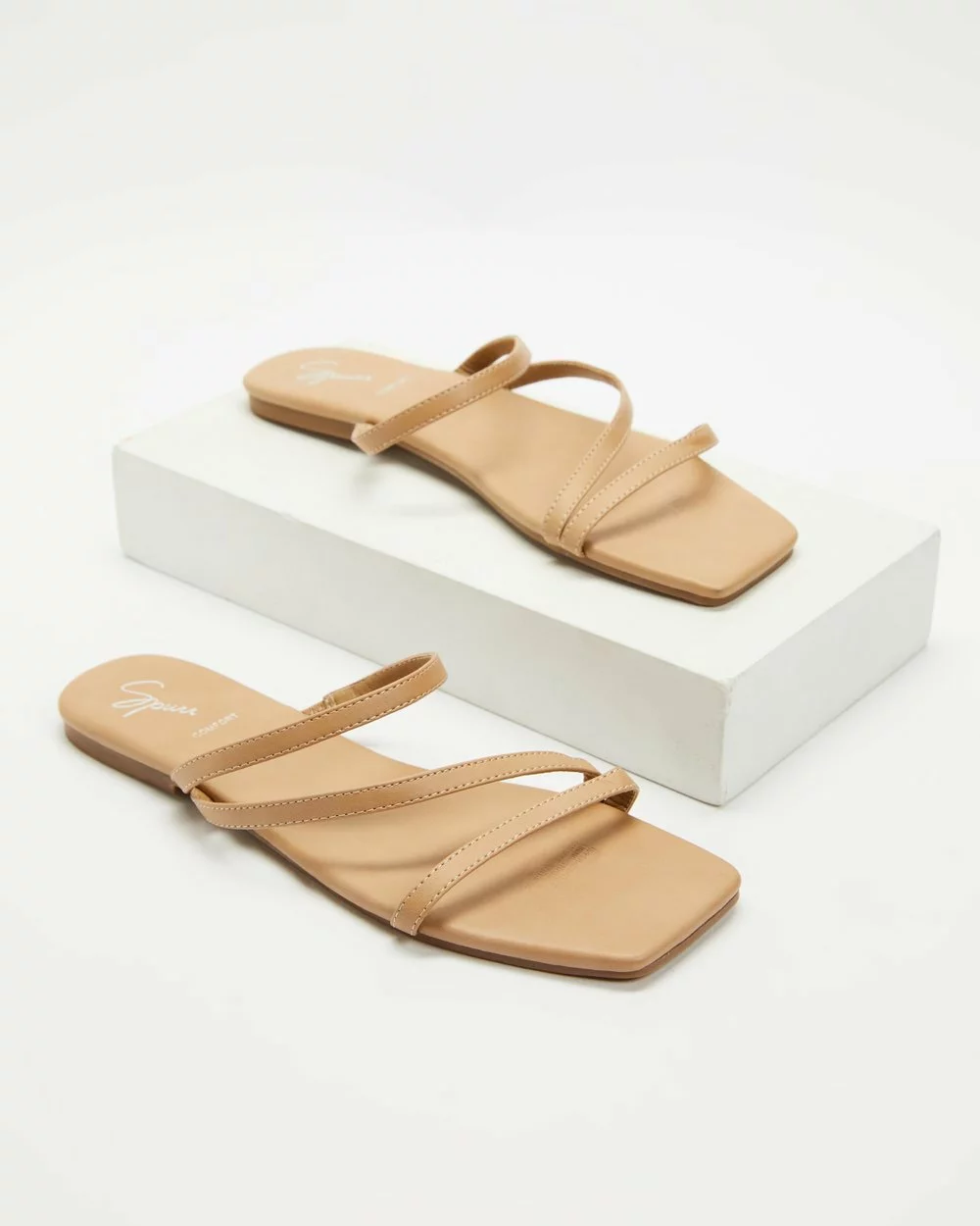 – Squared open toe design
