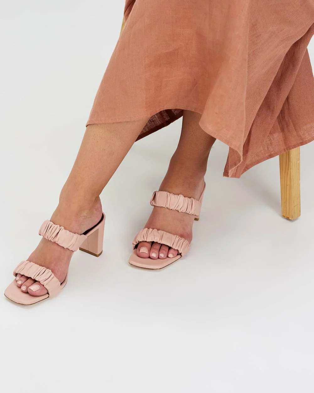 Staud Frankie Ruched Sandals Dark Blush