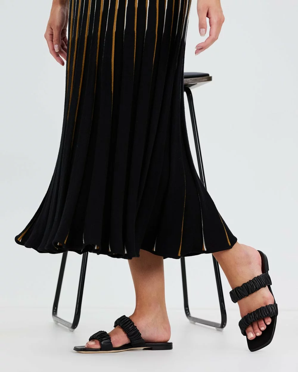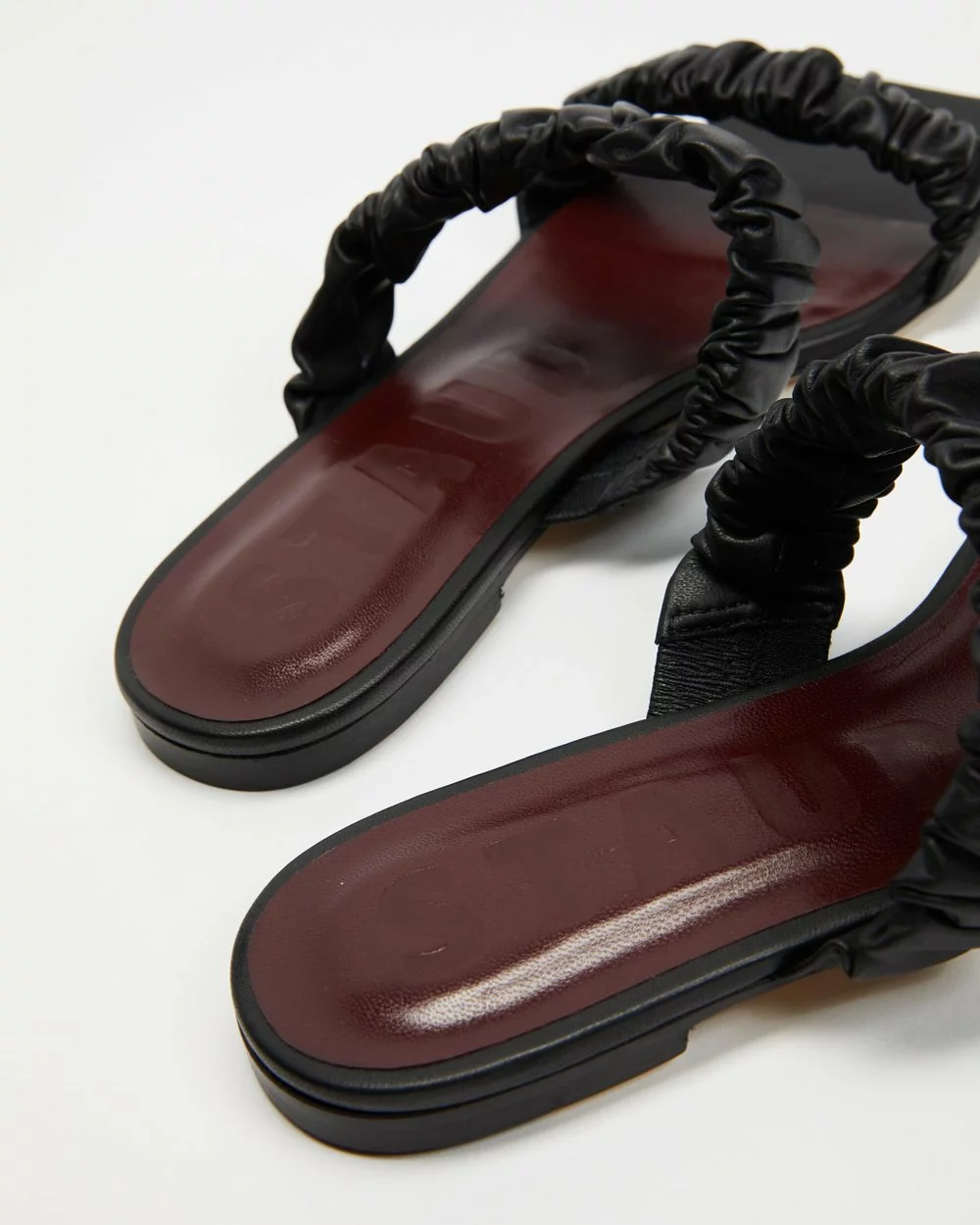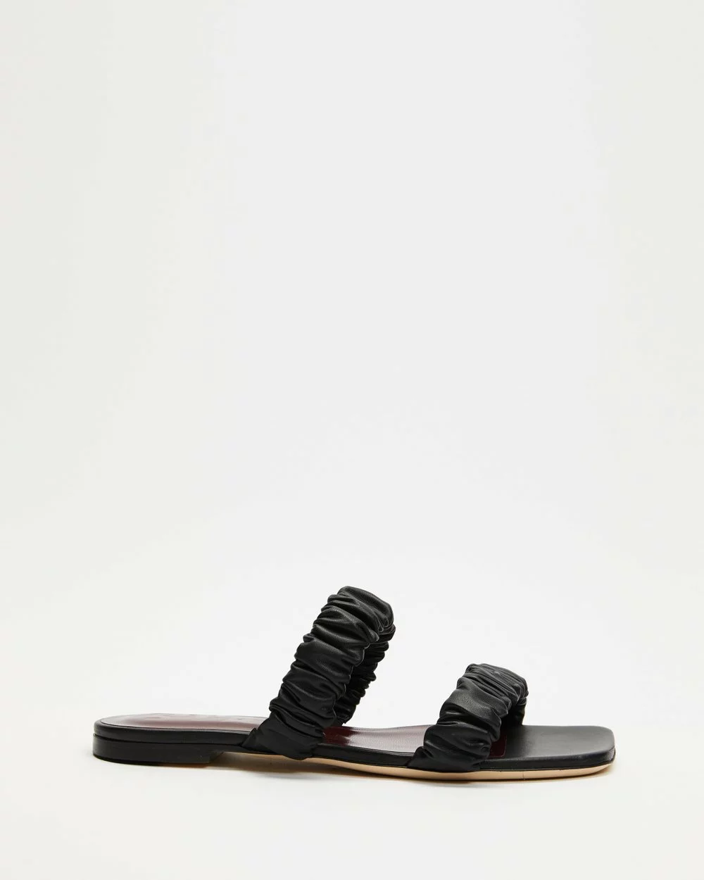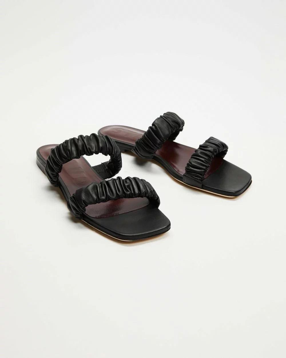 Offering fashionable footwear that’s not only accessible but empowering, LA-based brand Staud designs the Maya Ruched Sandals for monochrome lovers of leather to slip into something comfortable daily.
